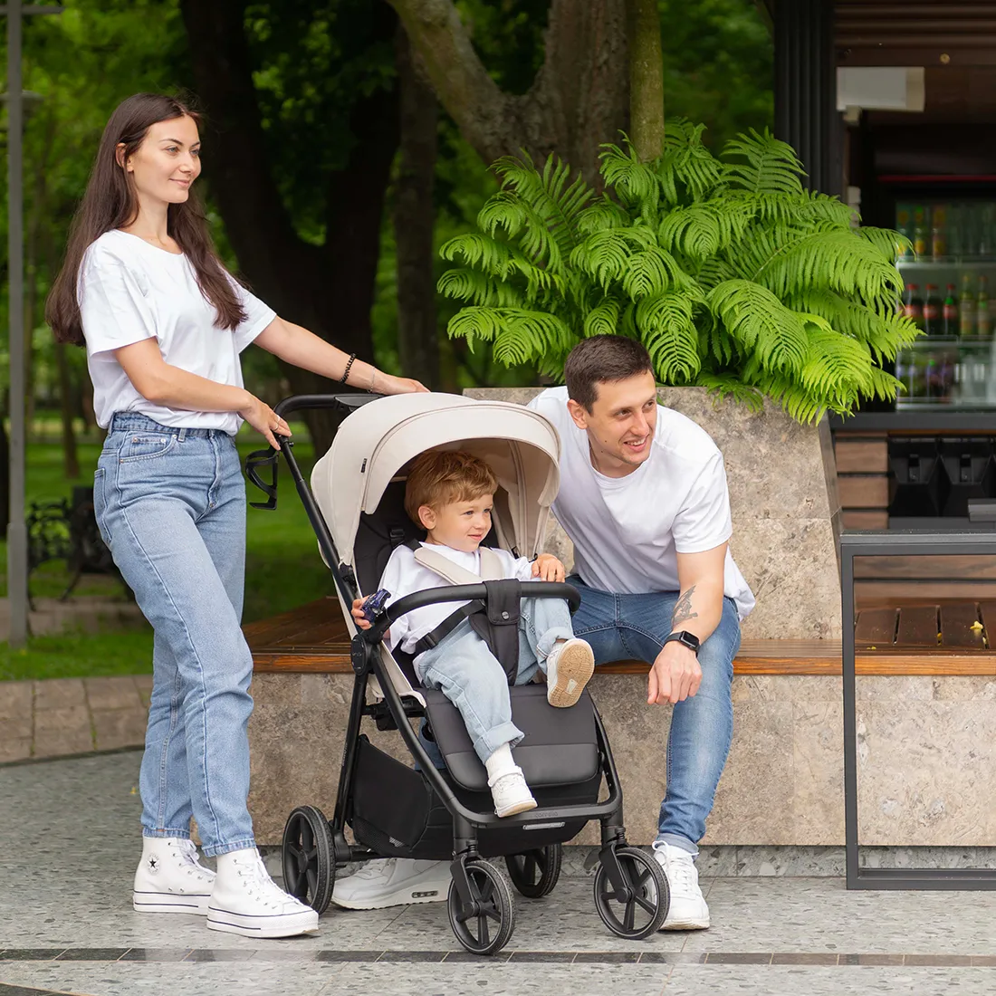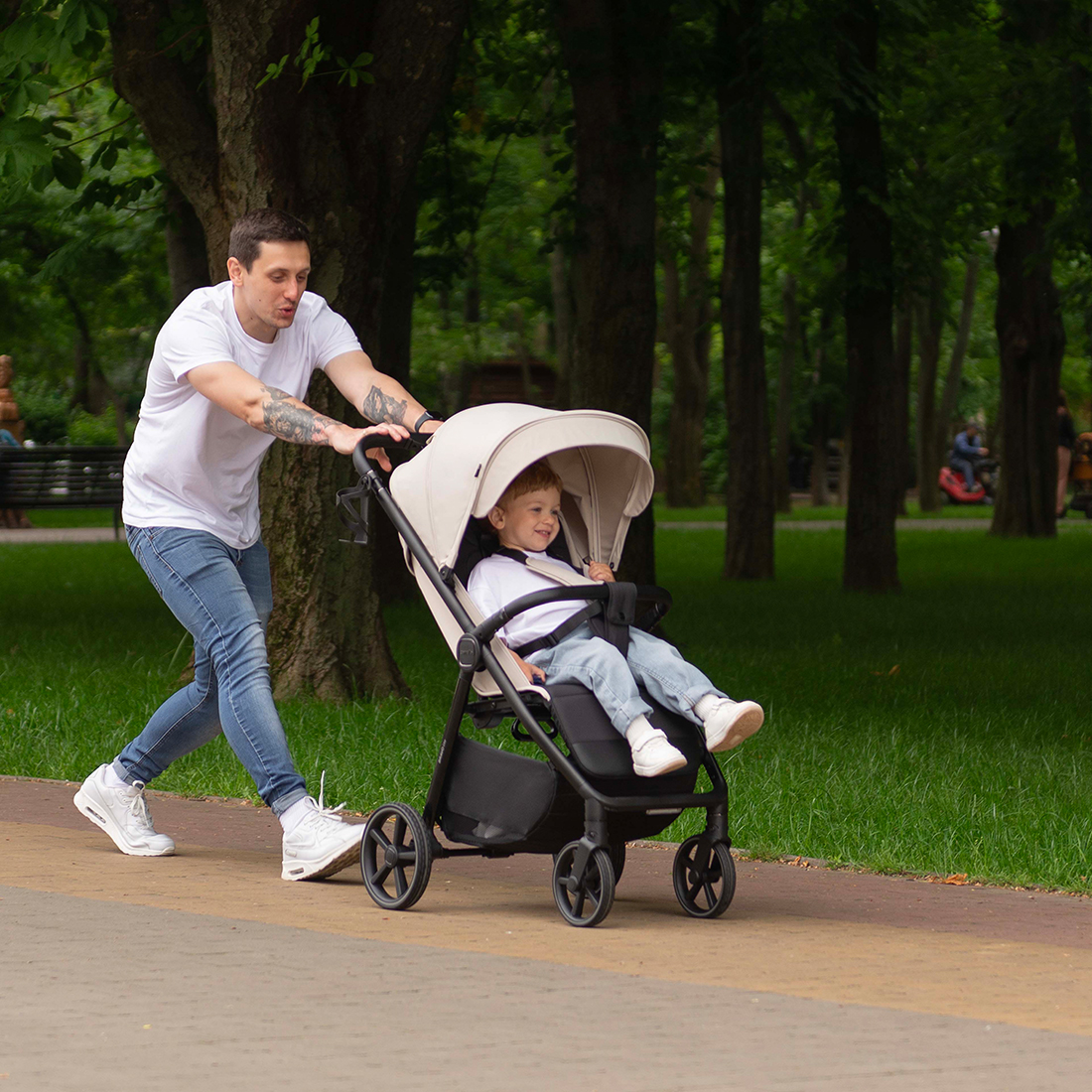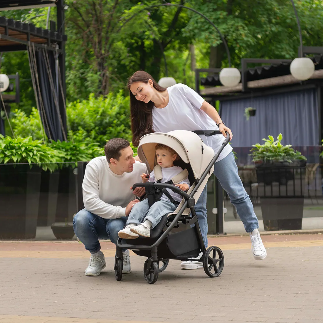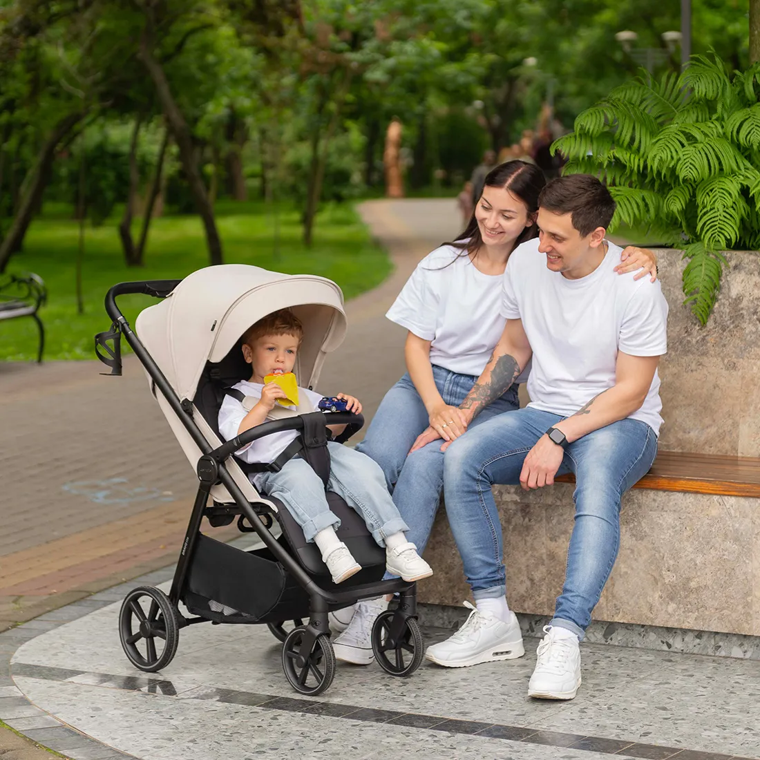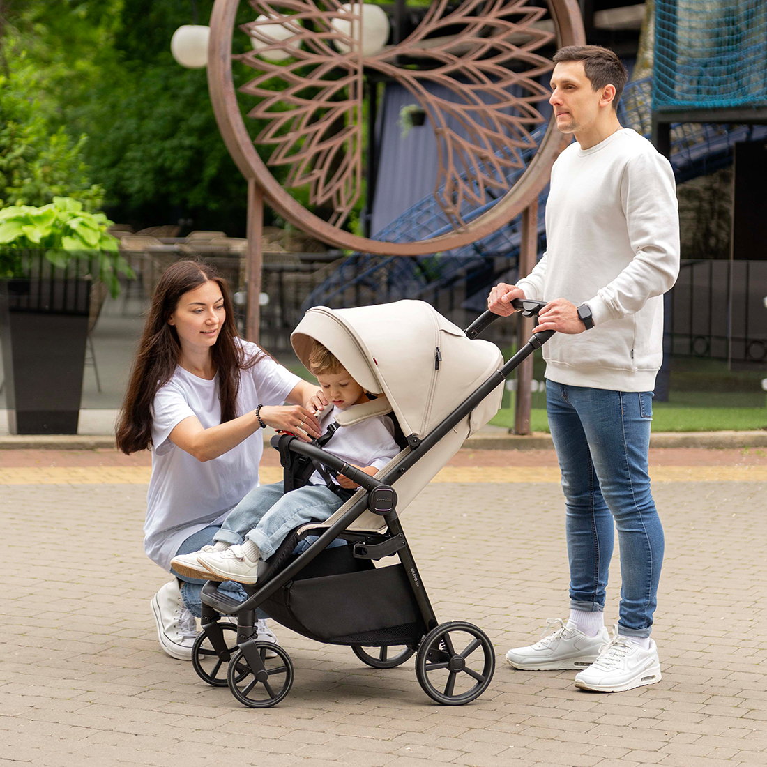 Фактурная и прочная экокожа на бампере и ручке коляски дополняет образ, а изящные акценты расставляет эффектная фурнитура.