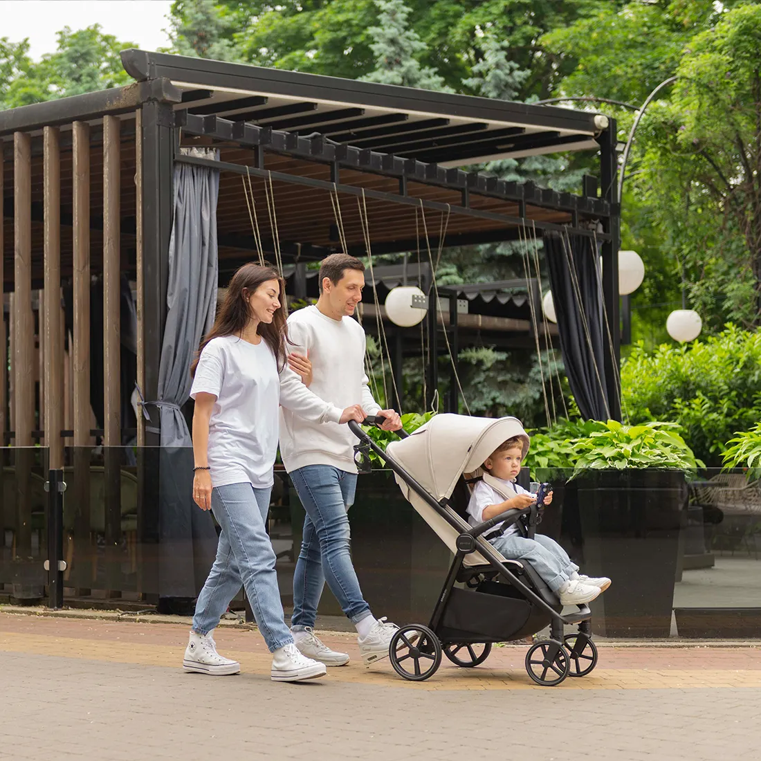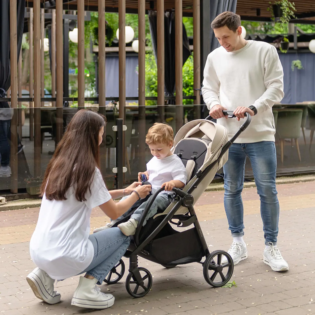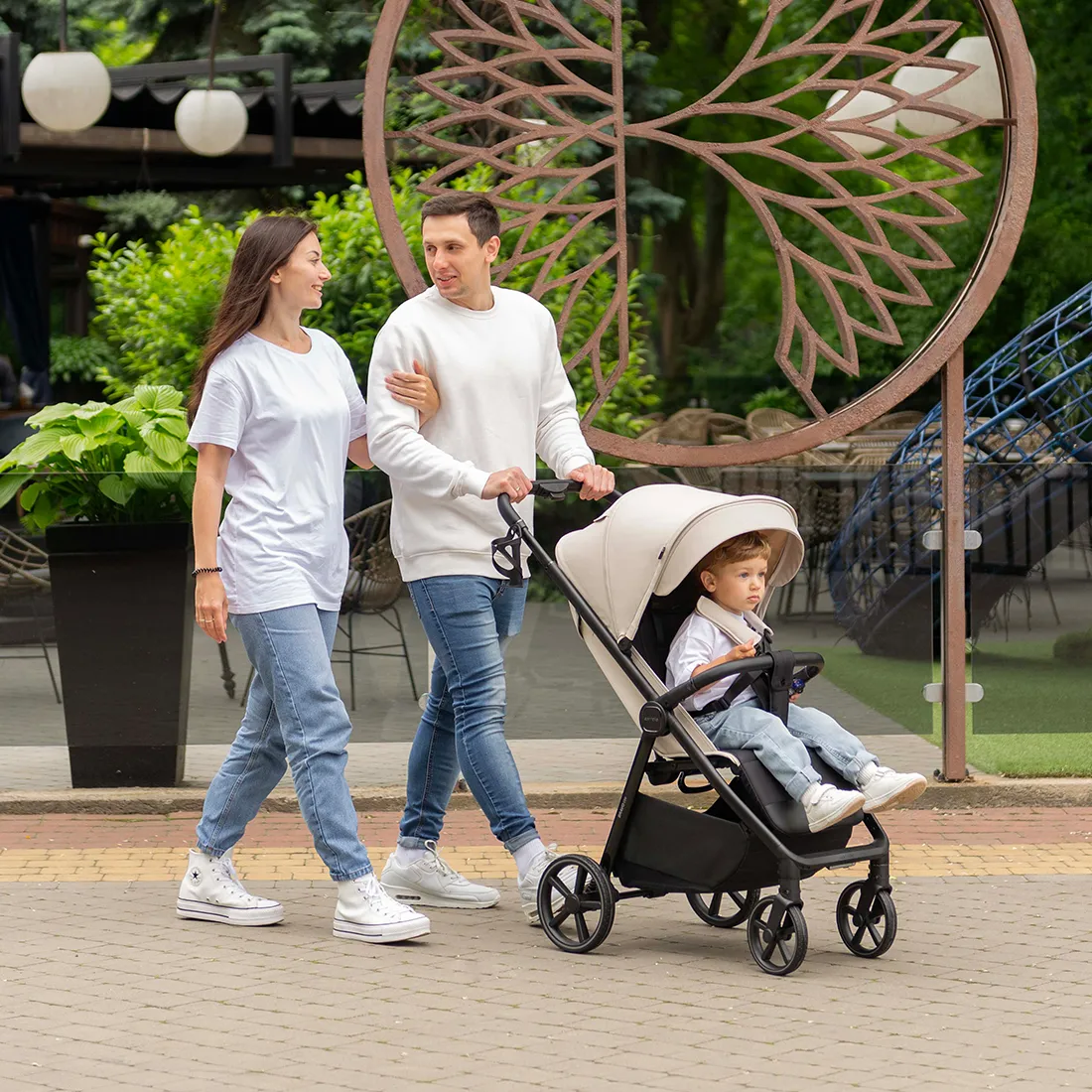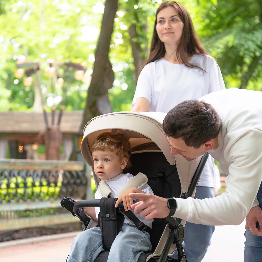 Фактурная и прочная экокожа на бампере и ручке коляски дополняет образ, а изящные акценты расставляет эффектная фурнитура.