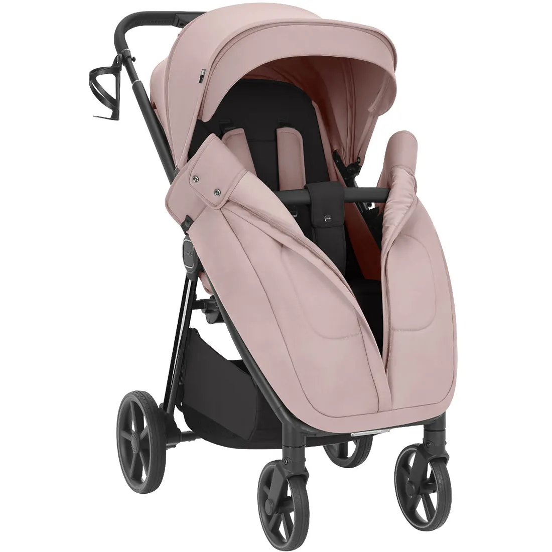 Корзина коляски с жестким основанием и удобным доступом. Безопасность и комфорт ребёнка обеспечивают пятиточечные ремни, поворотный бампер, ограничитель от сползания и LED фонарь. Доступны 3 режима света: сильный, средний и проблесковый (заряжается с помощью USB-кабеля).