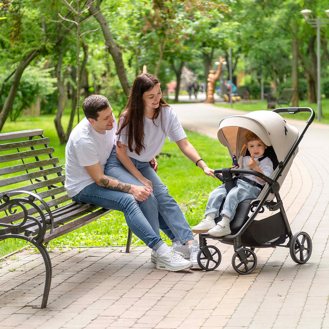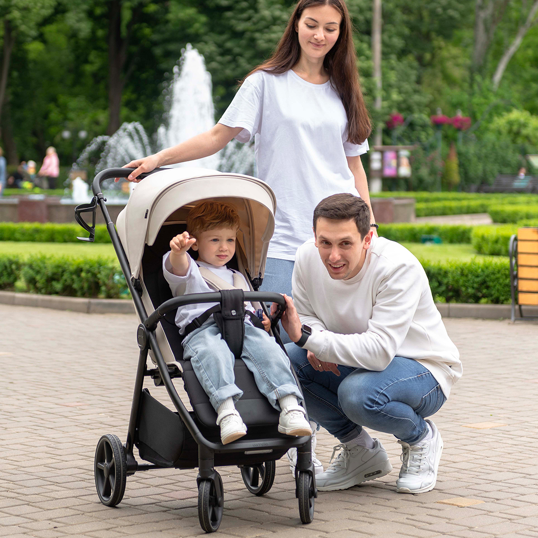 - коляска складывается сидением внутрь - текстиль сиденья защищен от загрязнений