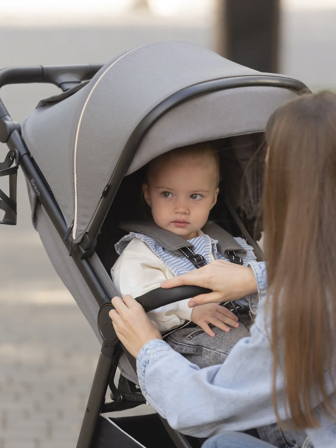 Чтобы сложить коляску, достаточно снять предохранитель, направить ручку вперёд и поднять Bravo за специальную ручку.