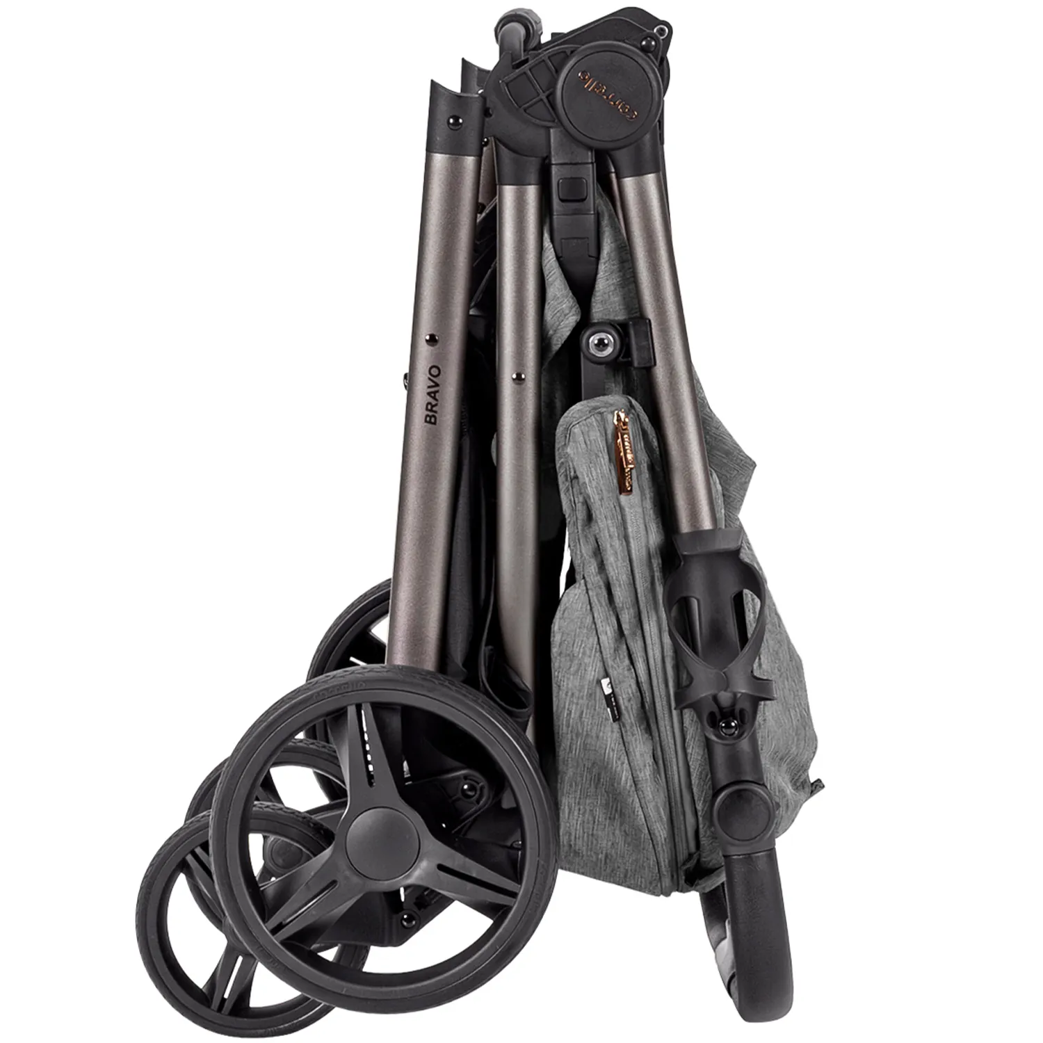 Родительская ручка подстраивается под ваш рост, а когда прогулка окончена, Bravo складывается почти магически — легко и компактно. Чтобы сложить коляску, достаточно снять предохранитель, направить ручку вперёд и поднять Bravo за специальную ручку.