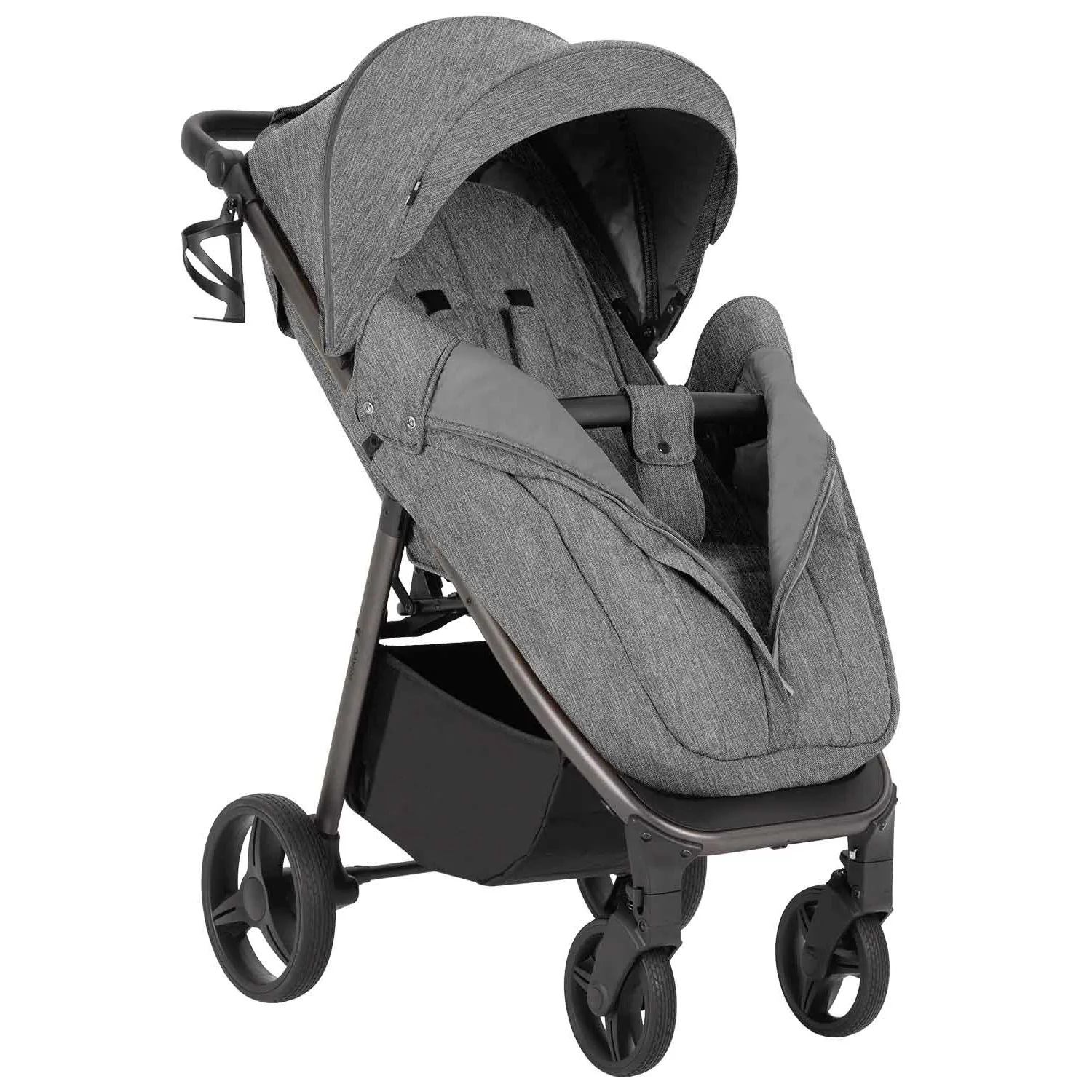 Спаренный тормоз надёжно зафиксирует коляску, а в багажной корзине найдётся местечко как для покупок, так и необходимых на прогуле вещей.