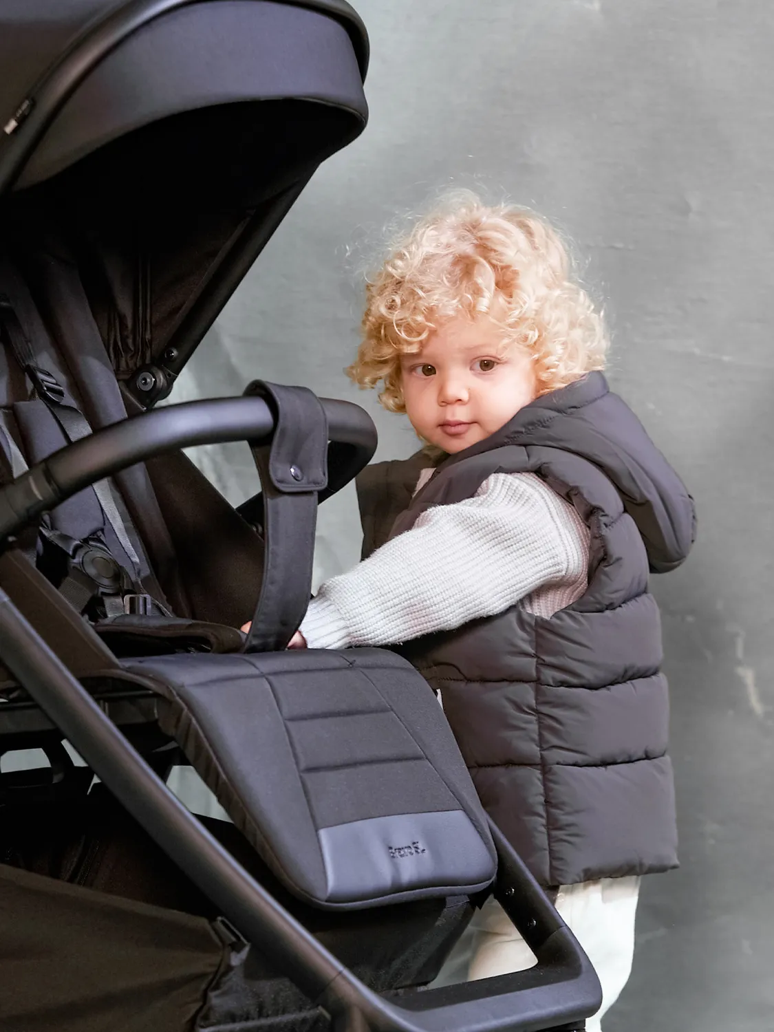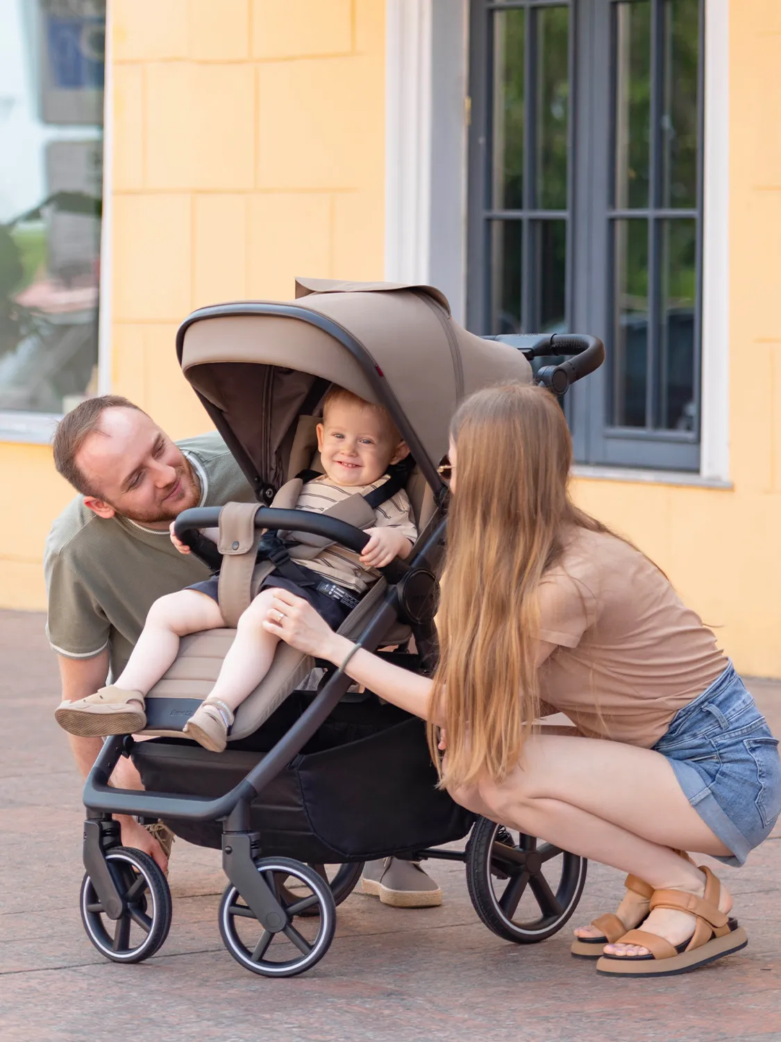 Ваш малыш будет надёжно защищён от любой непогоды: утеплённый чехол для ножек окутает теплом в прохладные дни, а водоотталкивающий капюшон с защитой UPF 50+ укроет от солнца и дождя. Через удобное окошко для присмотра вы всегда сможете наблюдать за малышом.