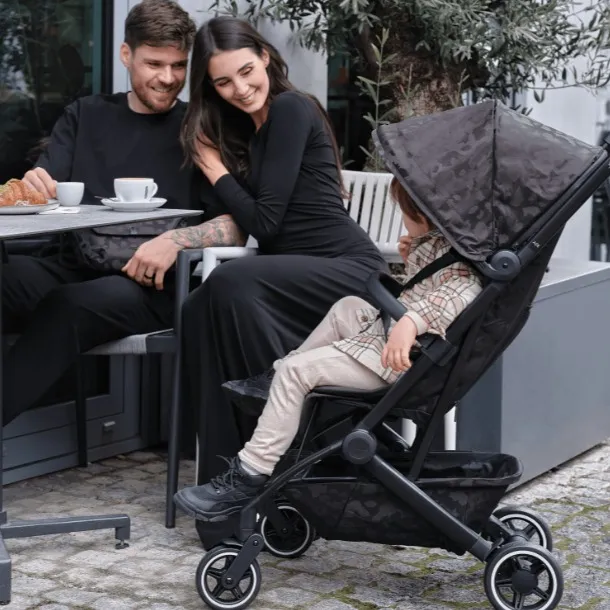 Эргономичное просторное сиденье, длинная раскладывающаяся спинка, большой солнцезащитный капюшон с вентиляцией, амортизация всех колес и стильный дизайн делают Aer+ идеальной для комфортных прогулок и захватывающих путешествий с ребенком.