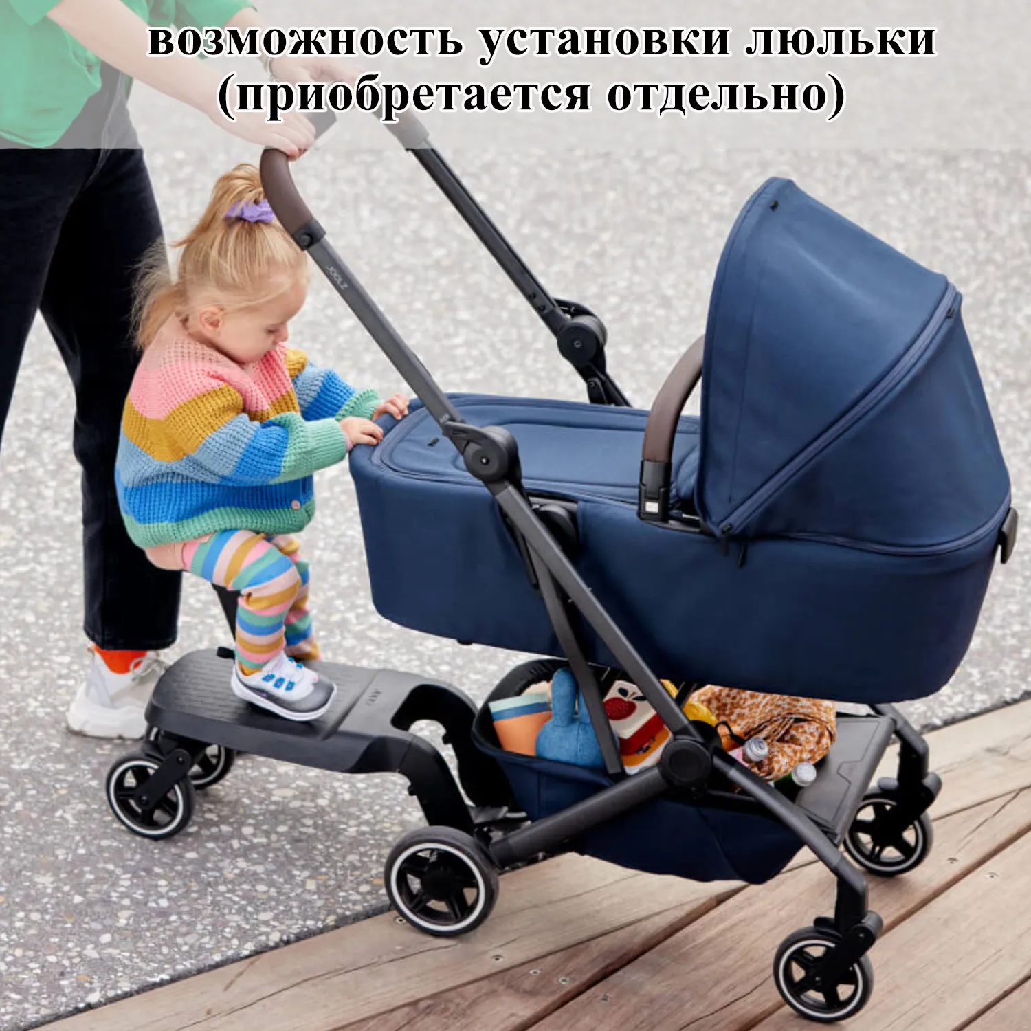 Коляску можно дополнить полноценной люлькой (приобретается отдельно), и она все равно будет складываться компактно. Весит всего 8 кг.