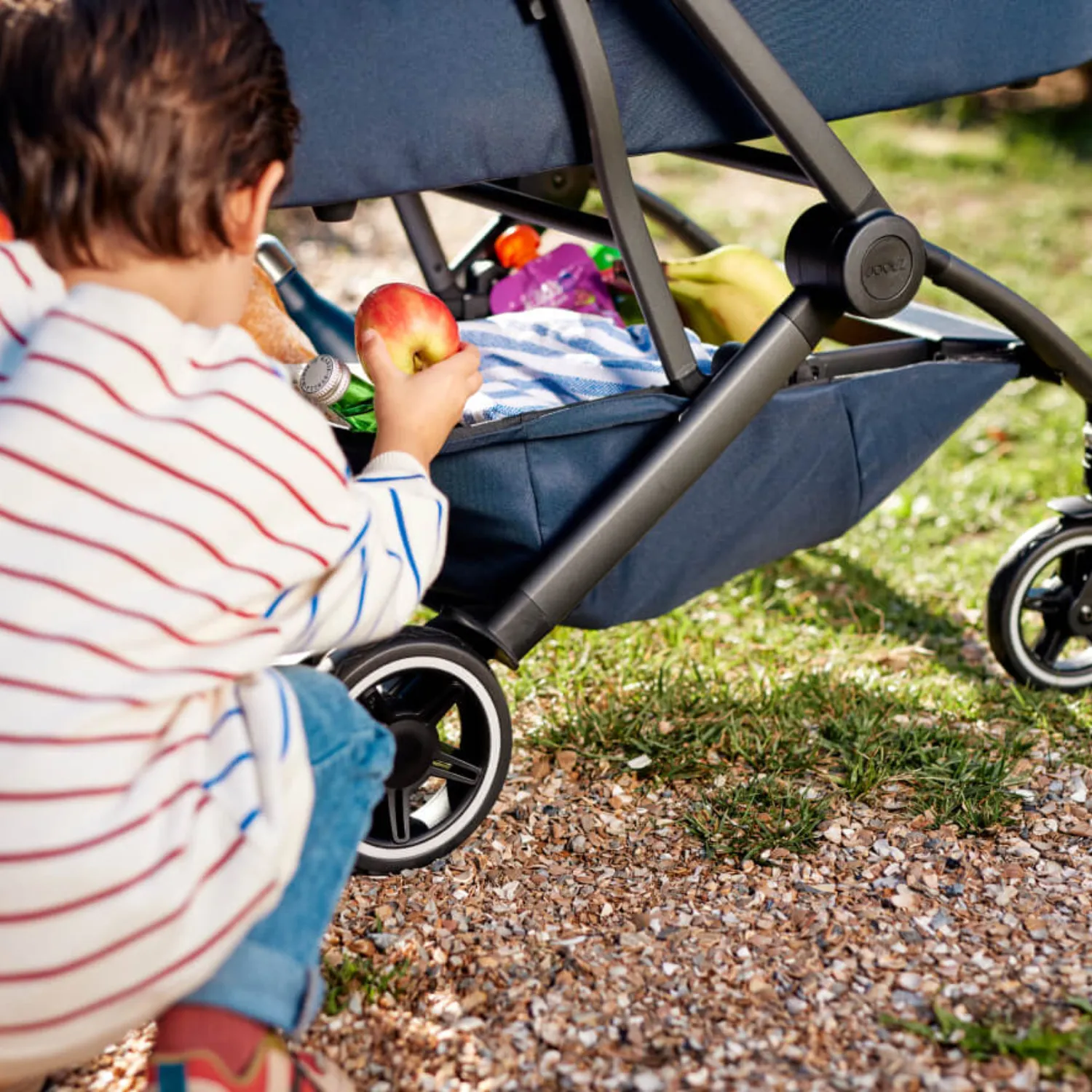 Несмотря на компактность, корзина Joolz Aer+ очень вместительна. Вы можете складывать в нее продукты, бутылочки, салфетки, сумки, игрушки, пледы или дождевики и гулять налегке! Она выдерживает до 5 кг. Сзади на спинке есть небольшой карман, куда можно положить документы, планшет или небольшой ноутбук, например, MacBook 13 или папку формата А4.