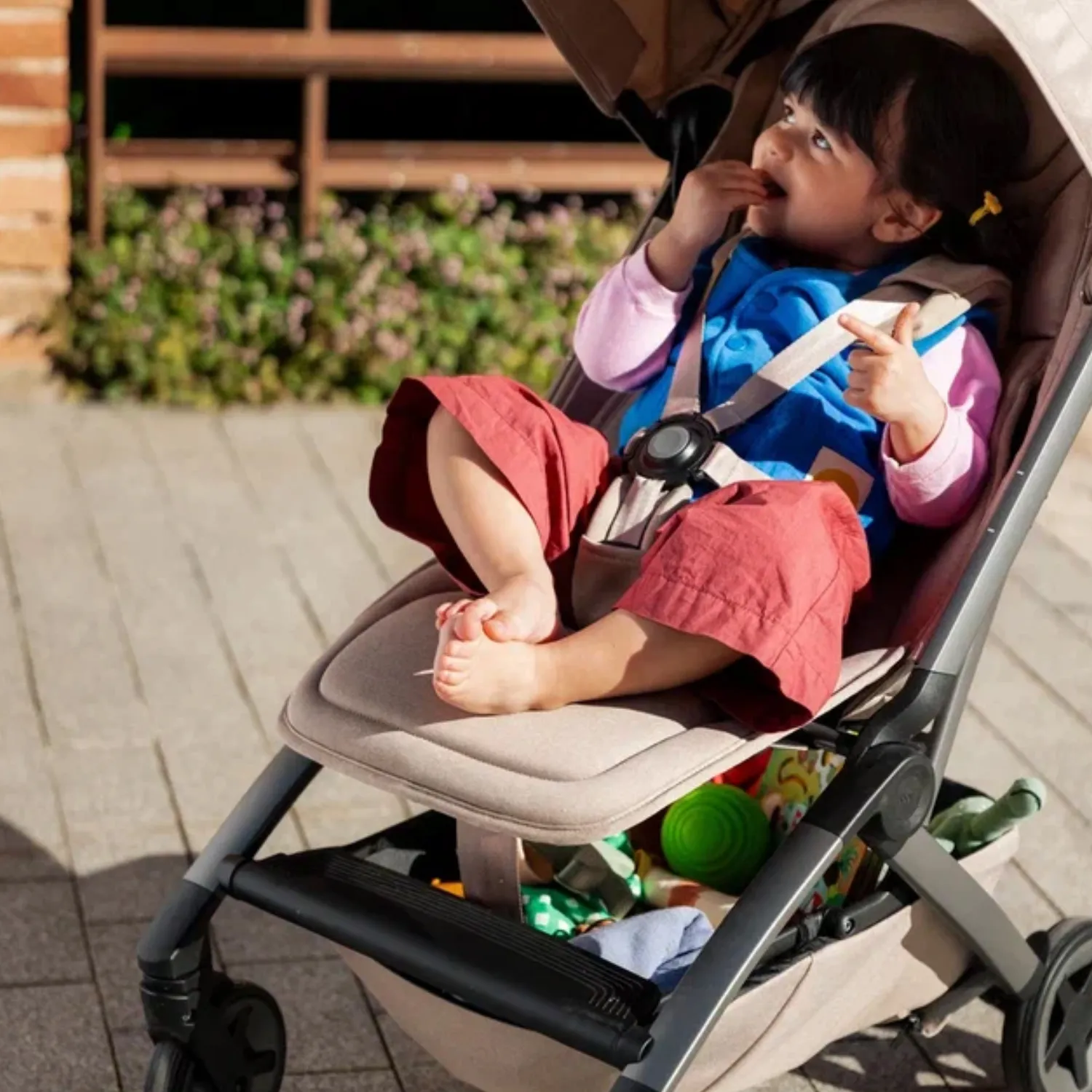 - отличия от модели Aer+: встроенная подножка, увеличенные колеса и корзина для покупок, улучшенная система регулировки длины ремней безопасности и откидывания спинки