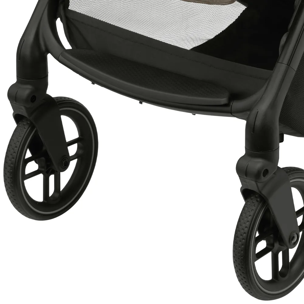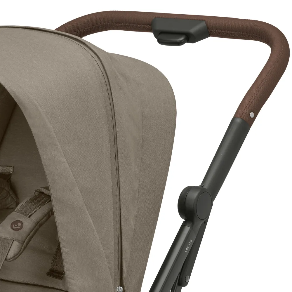 Неровные тротуары, бордюры и городские улицы - без проблем. Супер-мягкое сиденье Leona и амортизирующая подвеска делают каждую прогулку плавной и ультра-удобной. В любую погоду ваш ребенок всегда будет чувствовать себя комфортно и расслабленно с увеличенным капором.