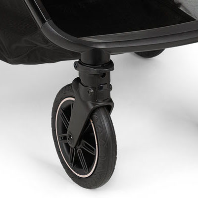 Передние поворотные колёса с фиксатором помогают уверенно двигаться по дороге. Прочные шины с пенорезиновым наполнителем готовы к любым условиям.