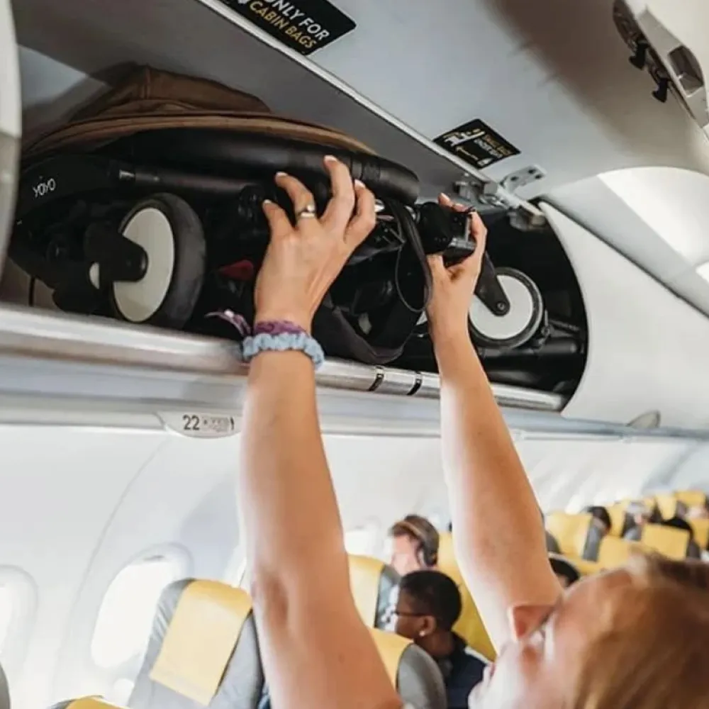 YOYO³ складывается вместе с рамой и подходит по размеру для большинства авиакомпаний, что делает эту коляску идеальной для повседневного использования и путешествий.