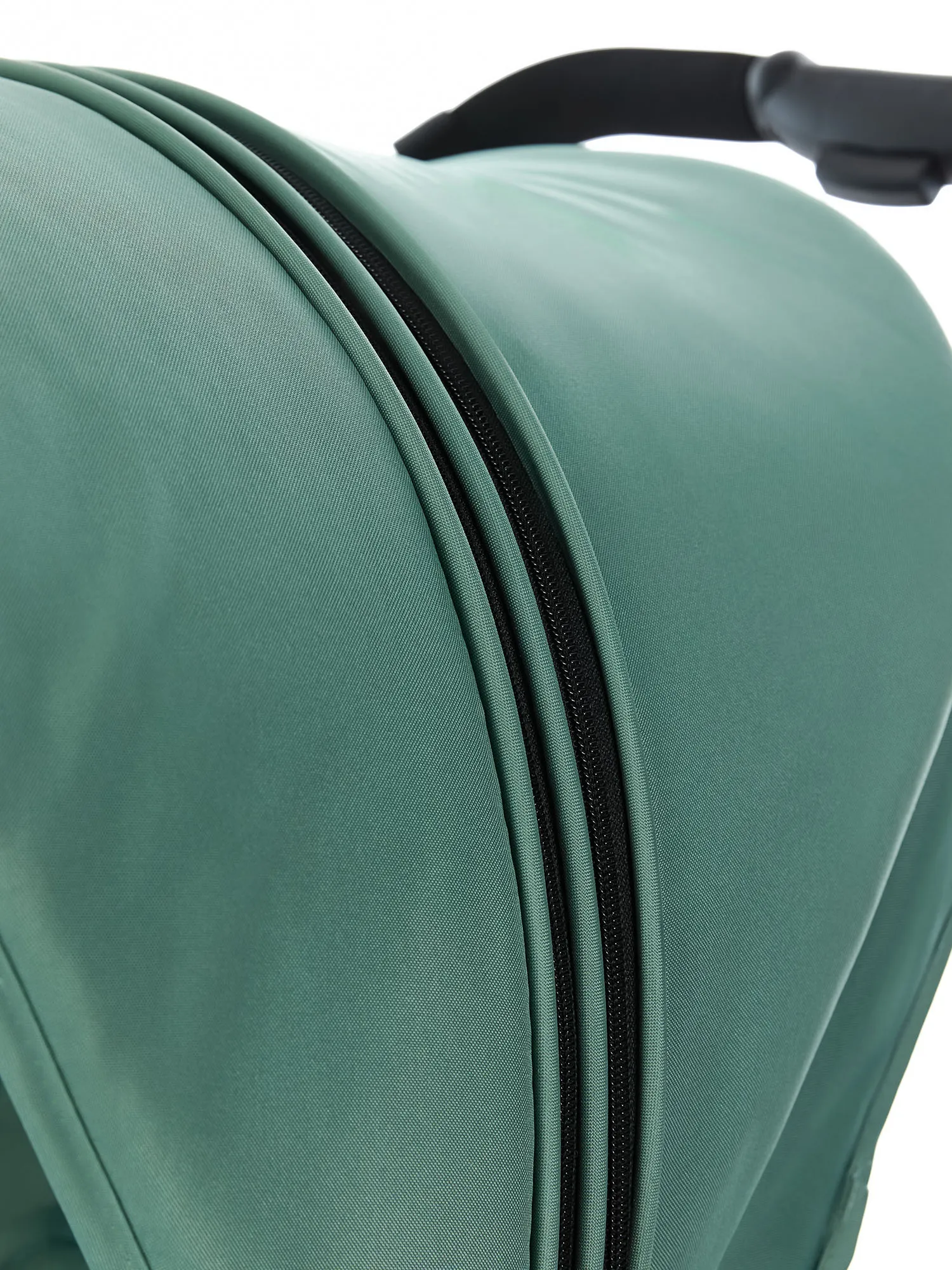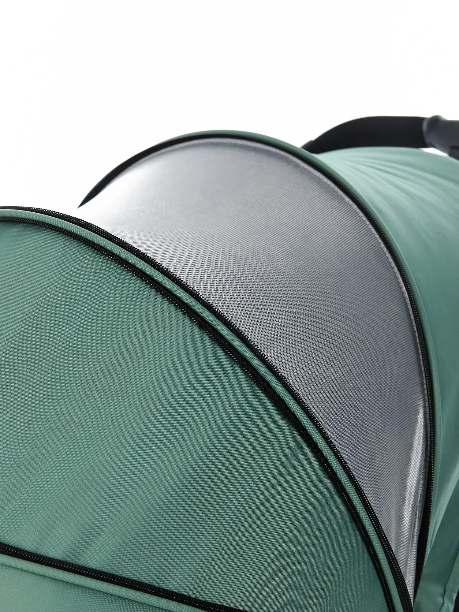 Модель выполнена в новой ткани Flatt Matt — матовой, глубокой по тону, тактильно приятной и устойчивой к внешним воздействиям. Этот материал не бликует на солнце и подчёркивает лаконичный силуэт коляски.