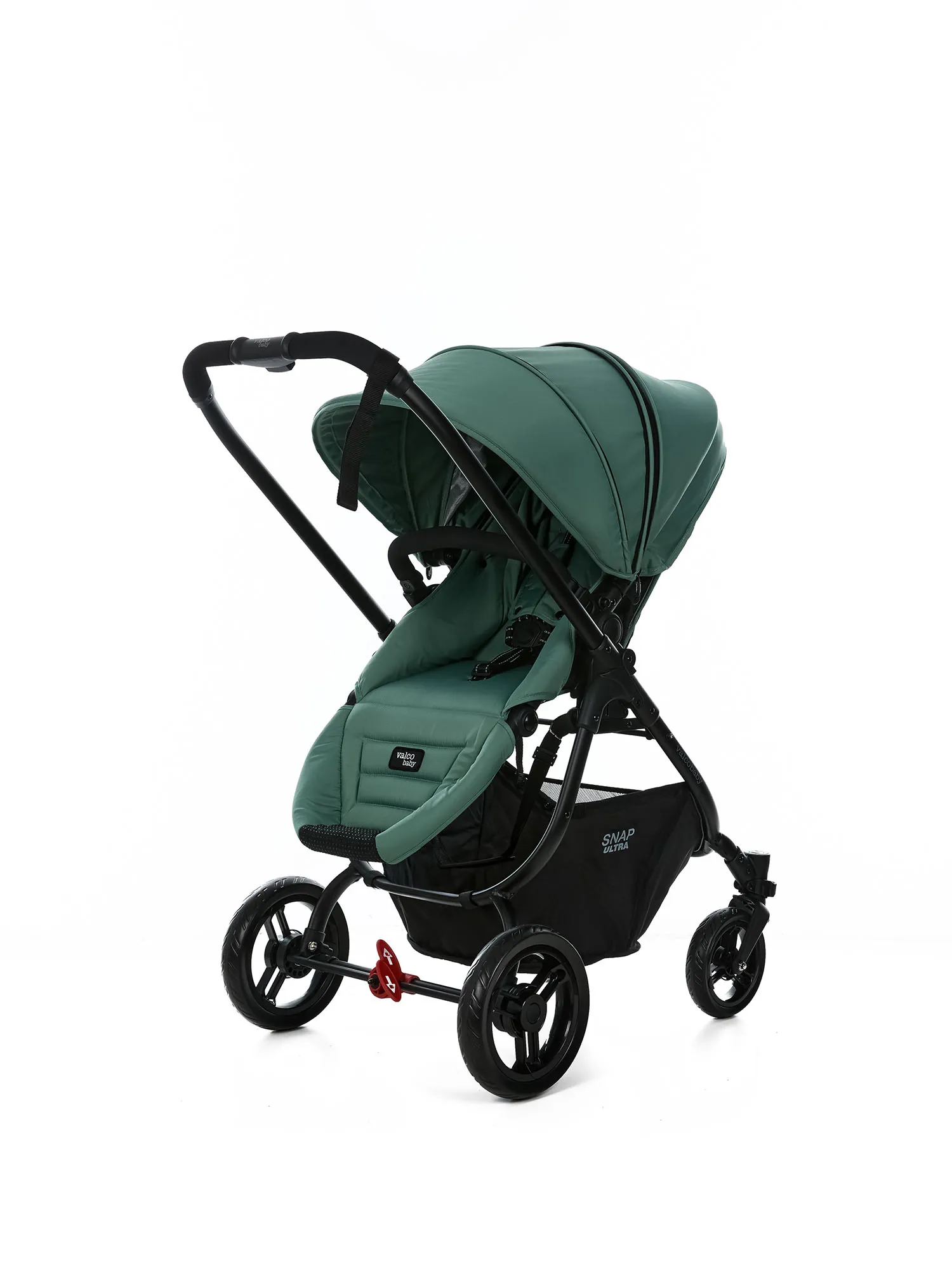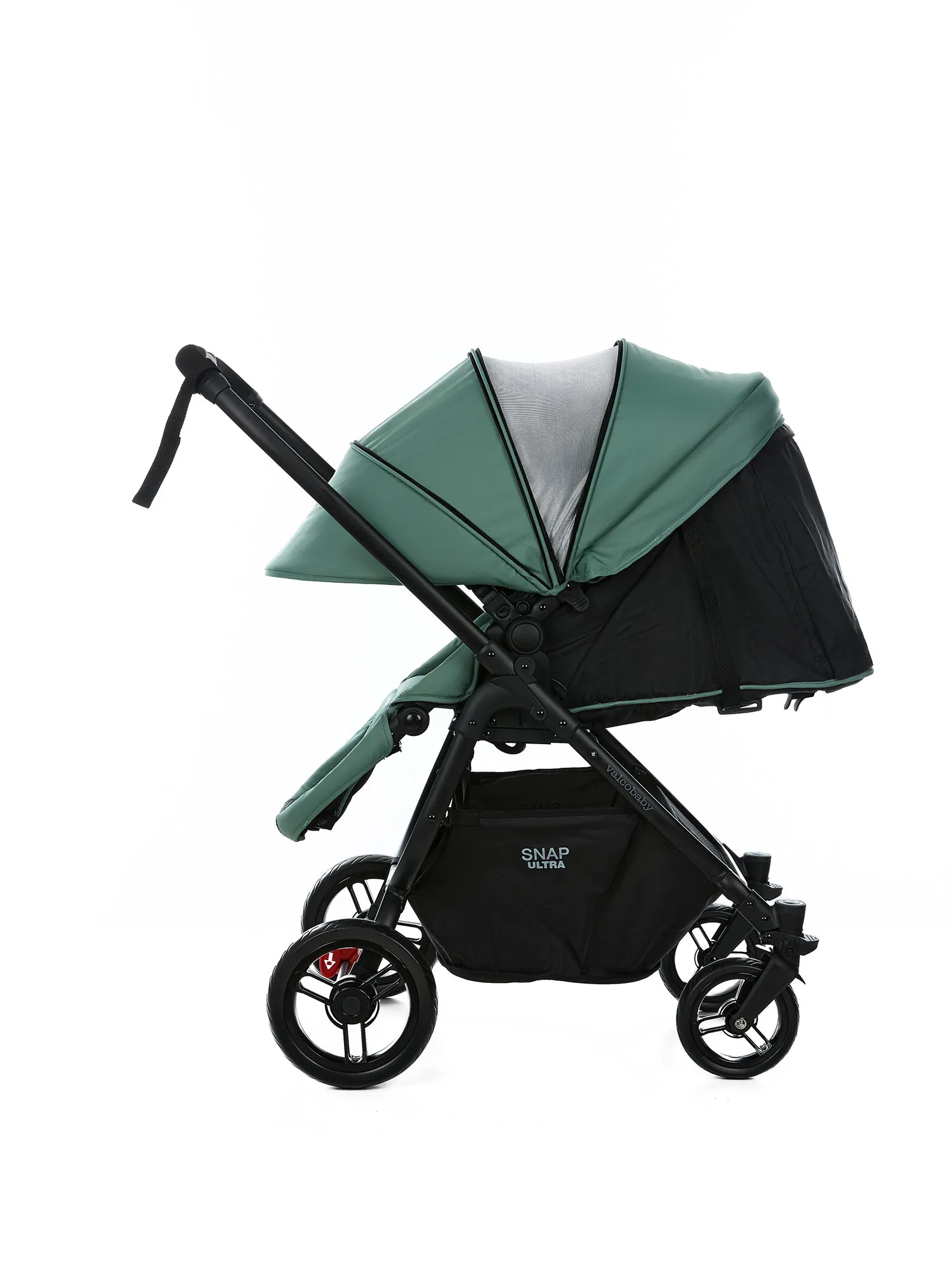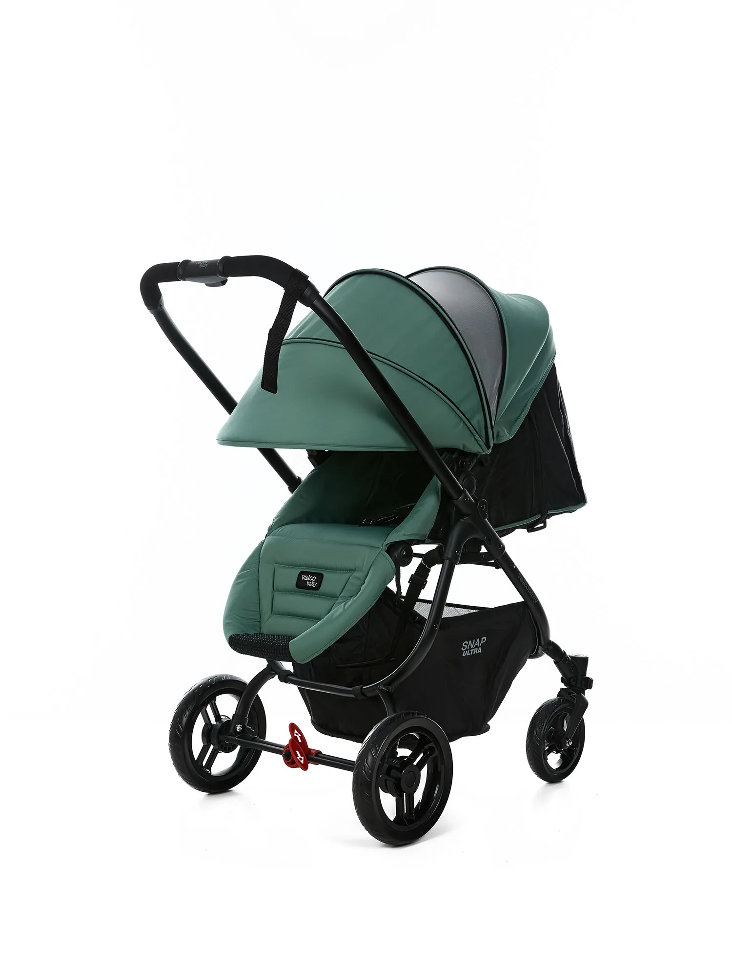 Модельный ряд Snap 4 Ultra Flatt Matt имеет четыре полиуретановых колеса, которые не боятся проколов. Два передних колеса могут вращаться на 360°, это увеличивает манёвренность коляски при движении по ровной дороге. Если же на пути часто возникают препятствия, колёса лучше зафиксировать. Для этого над каждым из них имеется специальный рычажок.