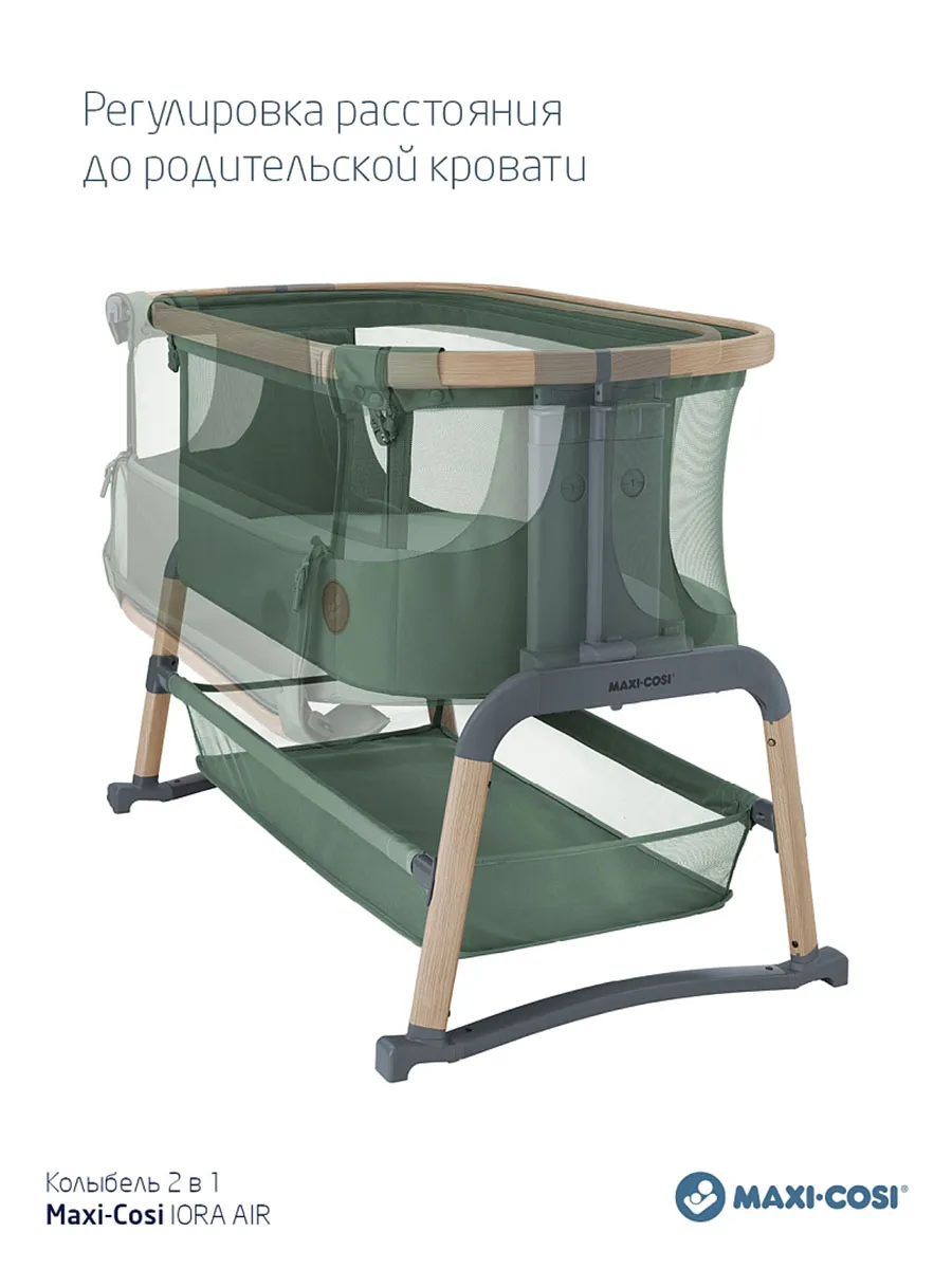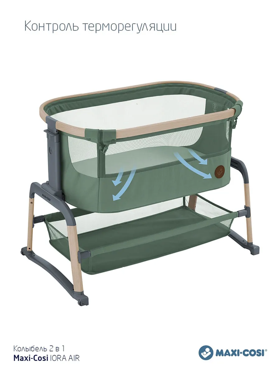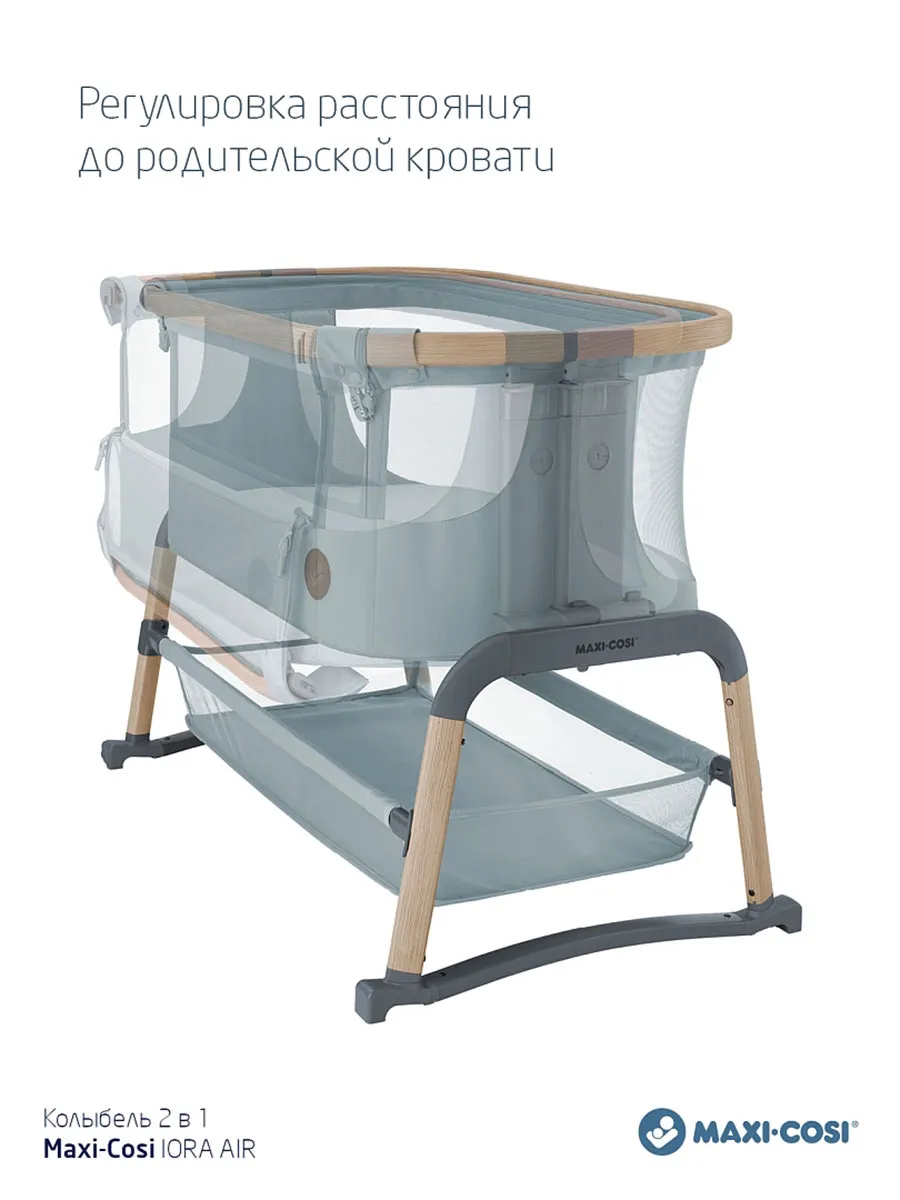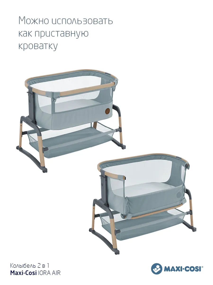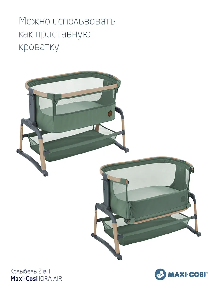 Maxi-Cosi Iora Air — это очень удобная и успокаивающая детская кроватка, созданная для того, чтобы быть ближе с вашим ребенком рядом и укреплять эту особую связь. Роскошный толстый матрас обеспечит вашему малышу весь необходимый комфорт. А во время более трудного сна удобная функция покачивания поможет успокоить вашего ребенка и снова заснуть. Модель Iora Air, изготовленная из сверхмягких тканей премиум-класса, на 100 % переработанных, имеет дышащую сетчатую ткань по всему периметру. А большая корзина для хранения внизу гарантирует, что все предметы первой необходимости вашего ребенка будут под рукой для круглосуточного ухода.