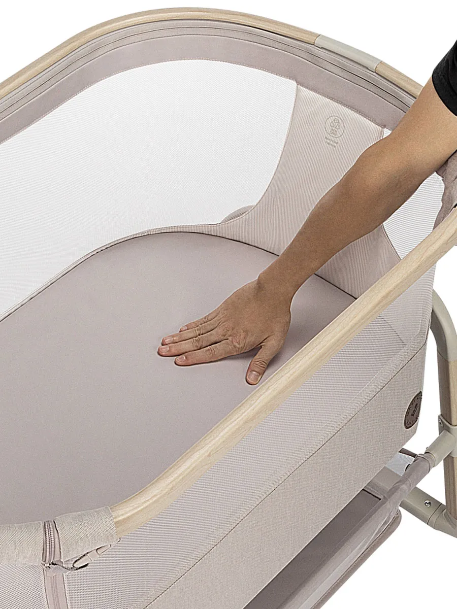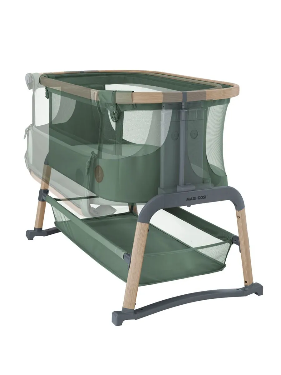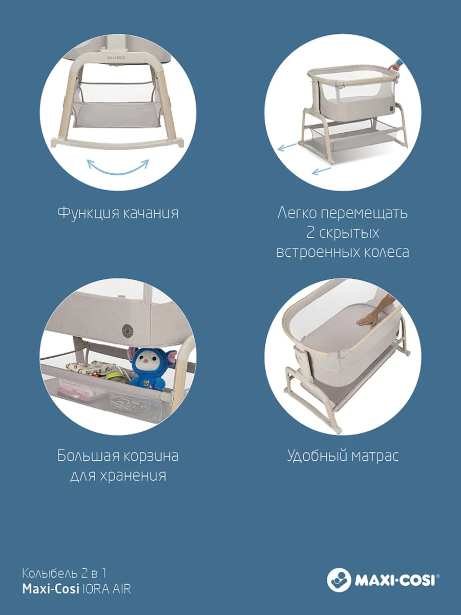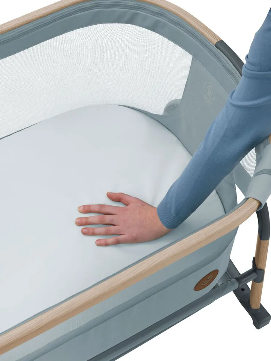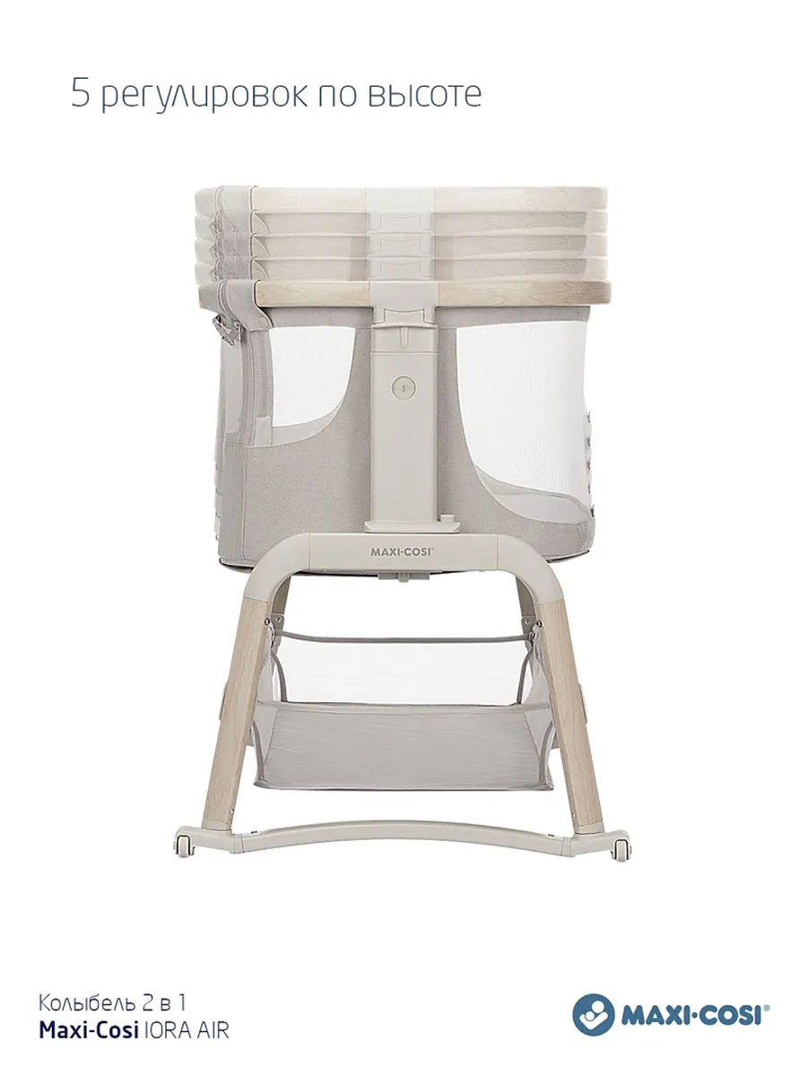 Maxi-Cosi Iora Air — это очень удобная и успокаивающая детская кроватка, созданная для того, чтобы быть ближе с вашим ребенком рядом и укреплять эту особую связь. Роскошный толстый матрас обеспечит вашему малышу весь необходимый комфорт. А во время более трудного сна удобная функция покачивания поможет успокоить вашего ребенка и снова заснуть. Модель Iora Air, изготовленная из сверхмягких тканей премиум-класса, на 100 % переработанных, имеет дышащую сетчатую ткань по всему периметру. А большая корзина для хранения внизу гарантирует, что все предметы первой необходимости вашего ребенка будут под рукой для круглосуточного ухода.
