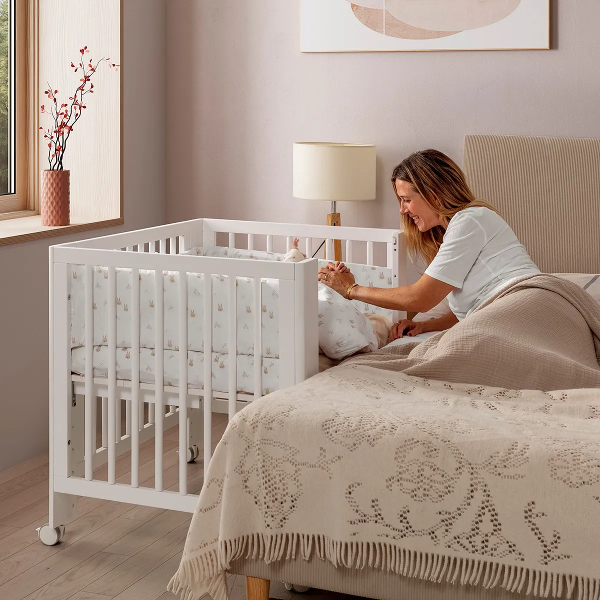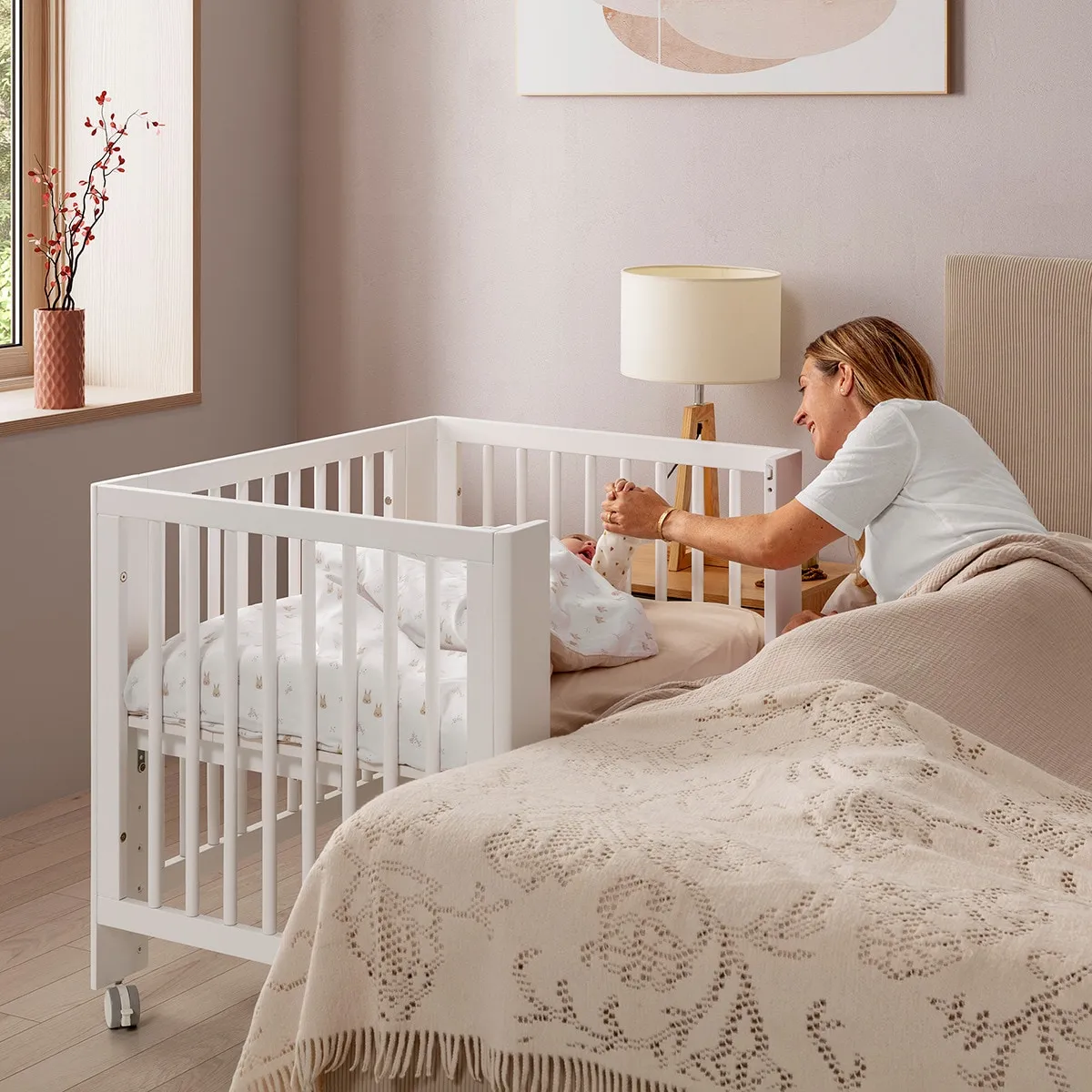 Комфорт всей семьи и близость с малышом — сохраните и то, и другое вместе с системой совместного сна от Micuna. Чтобы трансформировать приставную колыбель, снимите бортик и воспользуйтесь комплектом ремней для наилучшей фиксации к родительской кровати. Ночью можно с комфортом покормить малыша, не вставая с постели, что особенно актуально мамам после кесарева. Колыбель для совместного сна из натурального дерева позволит малышу чувствовать близость родителей, ощущая спокойствие и безопасность.