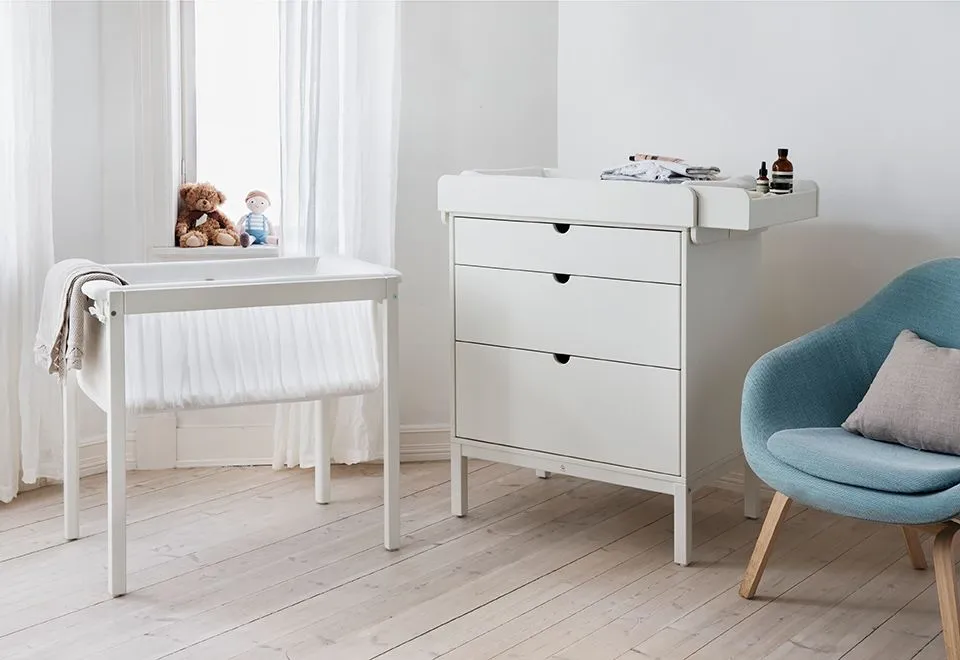 Все, что вам нужно на расстоянии вытянутой руки, когда колыбелька и пеленальная доска расположены на кровати. Колыбель, размещенная внутри кровати, создает оберегающую и спокойную атмосферу для вашего ребенка. Стойка колыбели трансформируется в игровой столик путем переворачивания пеленальной доски вверх дном и размещения ее на стойке колыбели.