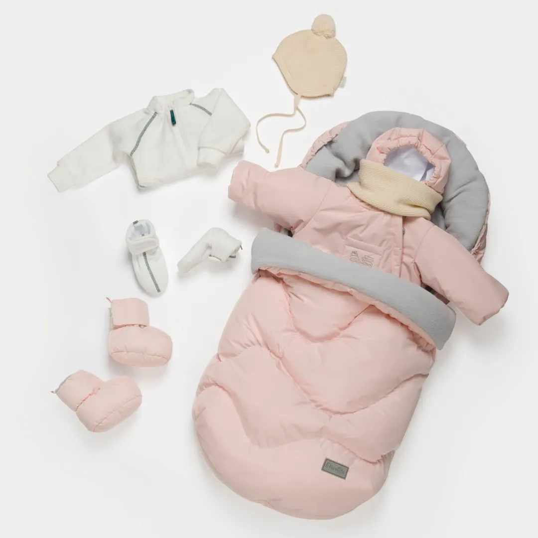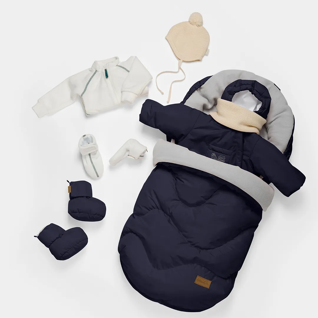 Комбинезон гармонично сочетается c зимним конвертом Mansita Flappy, создавая полноценный набор для прогулок при температуре от 0°C до -20°C, с учетом внутренней одежды.