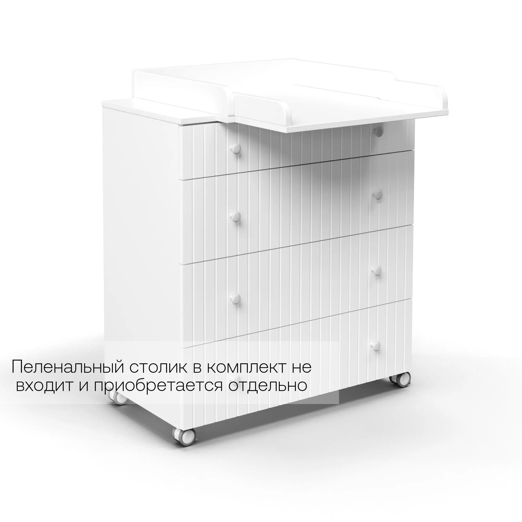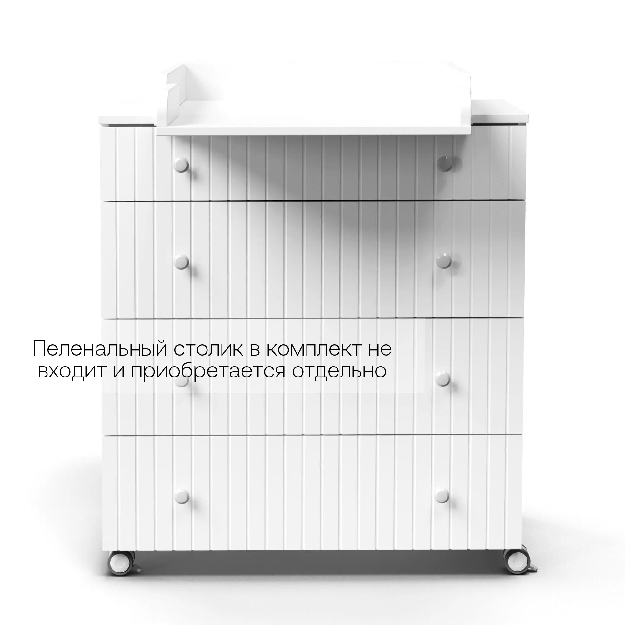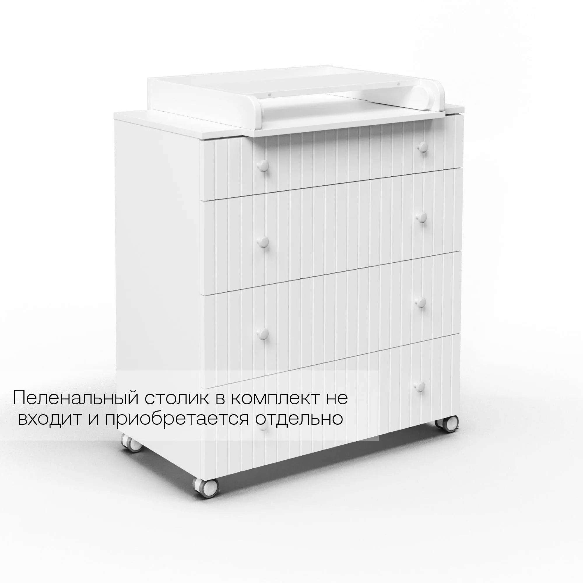 Данный комод можно использовать, как с пеленальным столиком, так и без. Пеленальный столик в комплект не входит и приобретается отдельно.