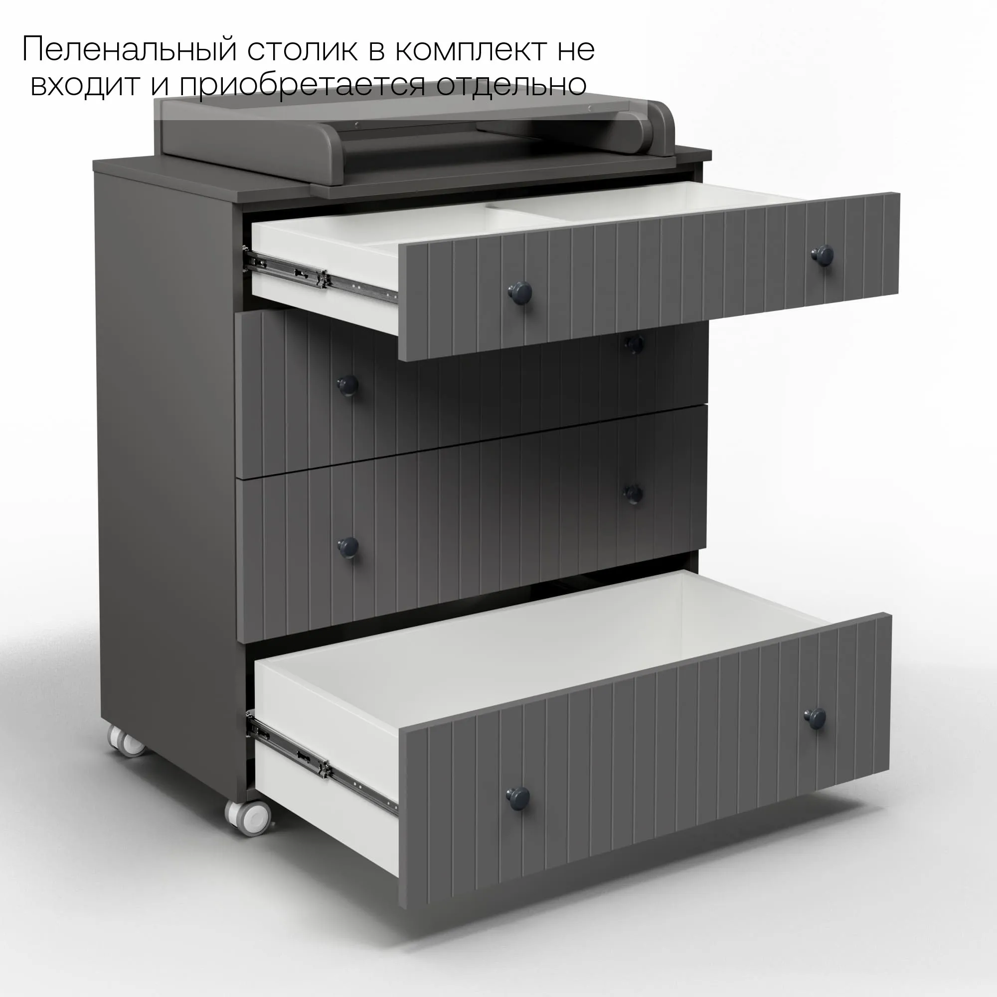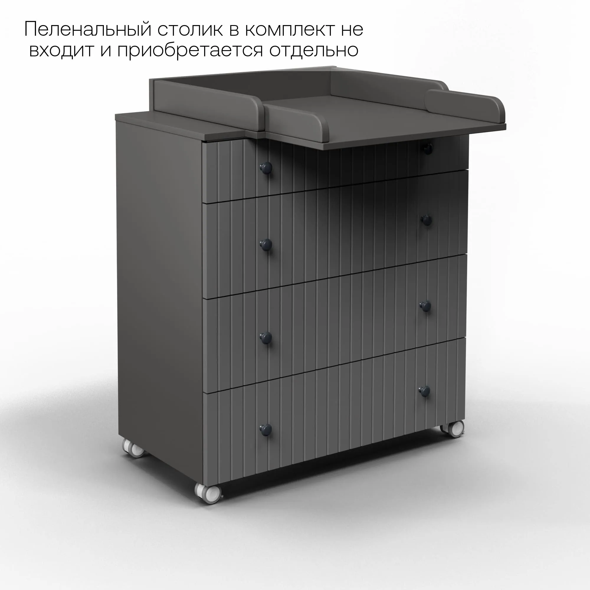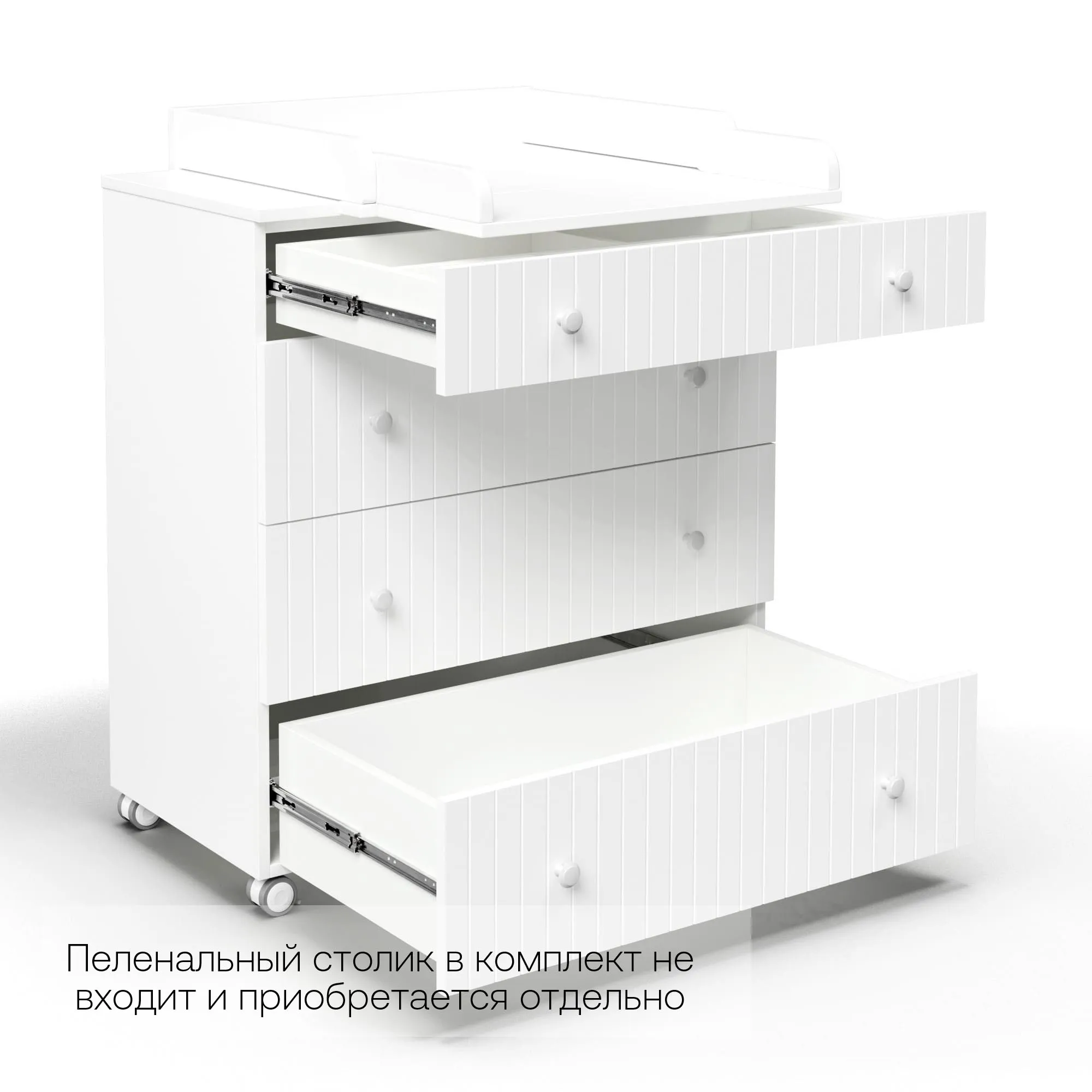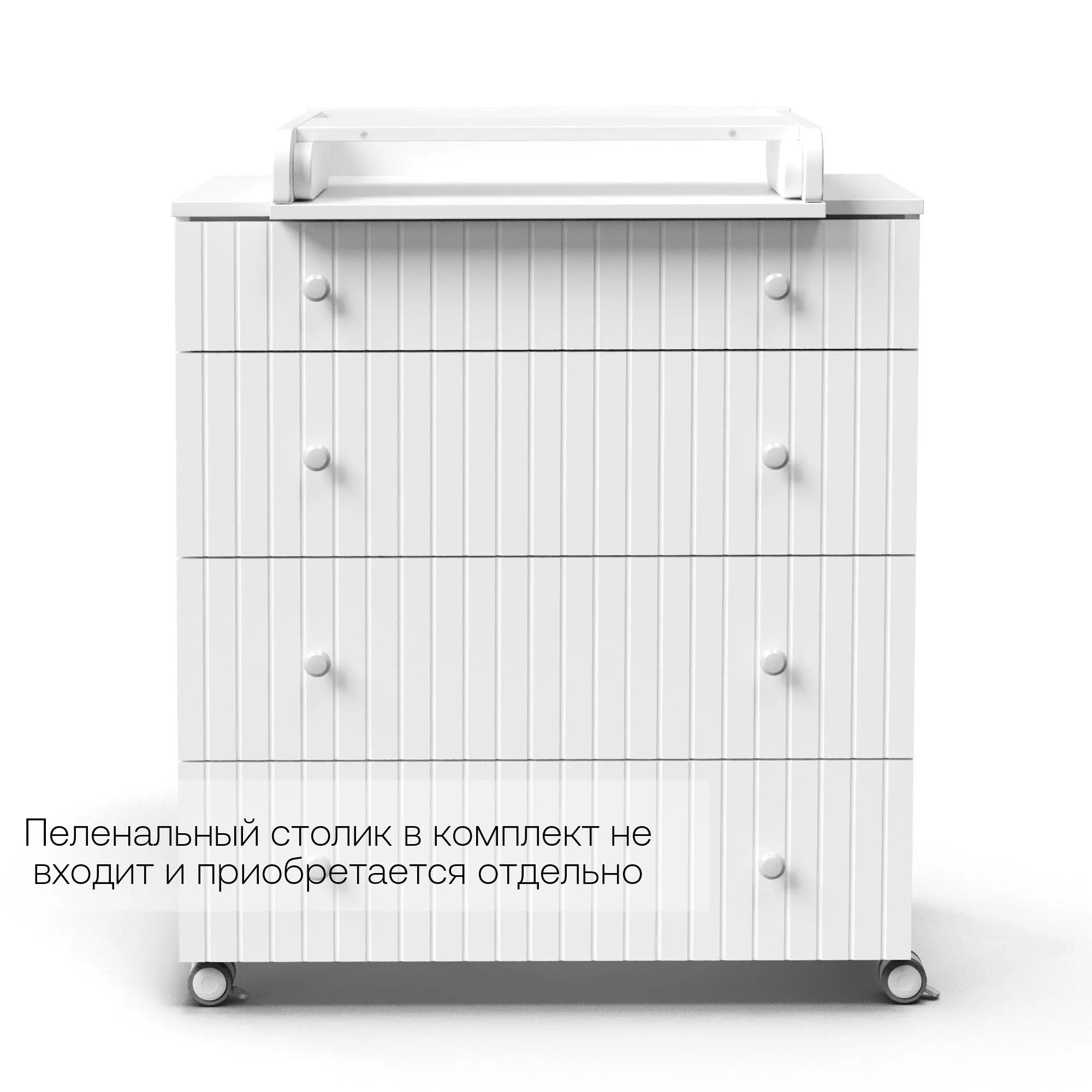 Данный комод можно использовать, как с пеленальным столиком, так и без. Пеленальный столик в комплект не входит и приобретается отдельно.