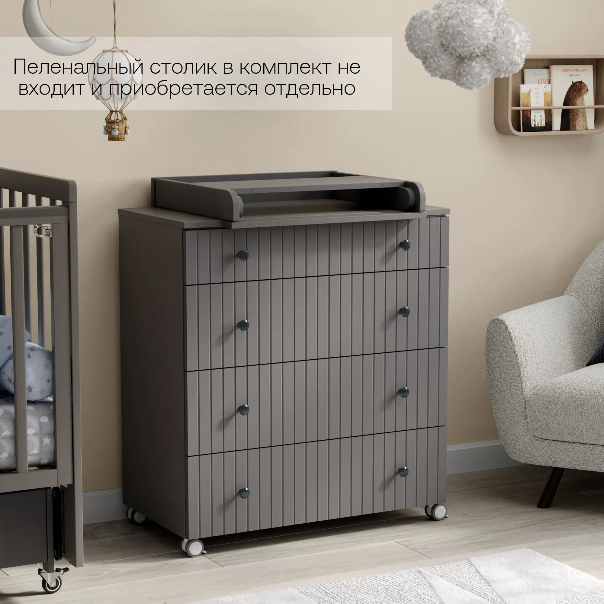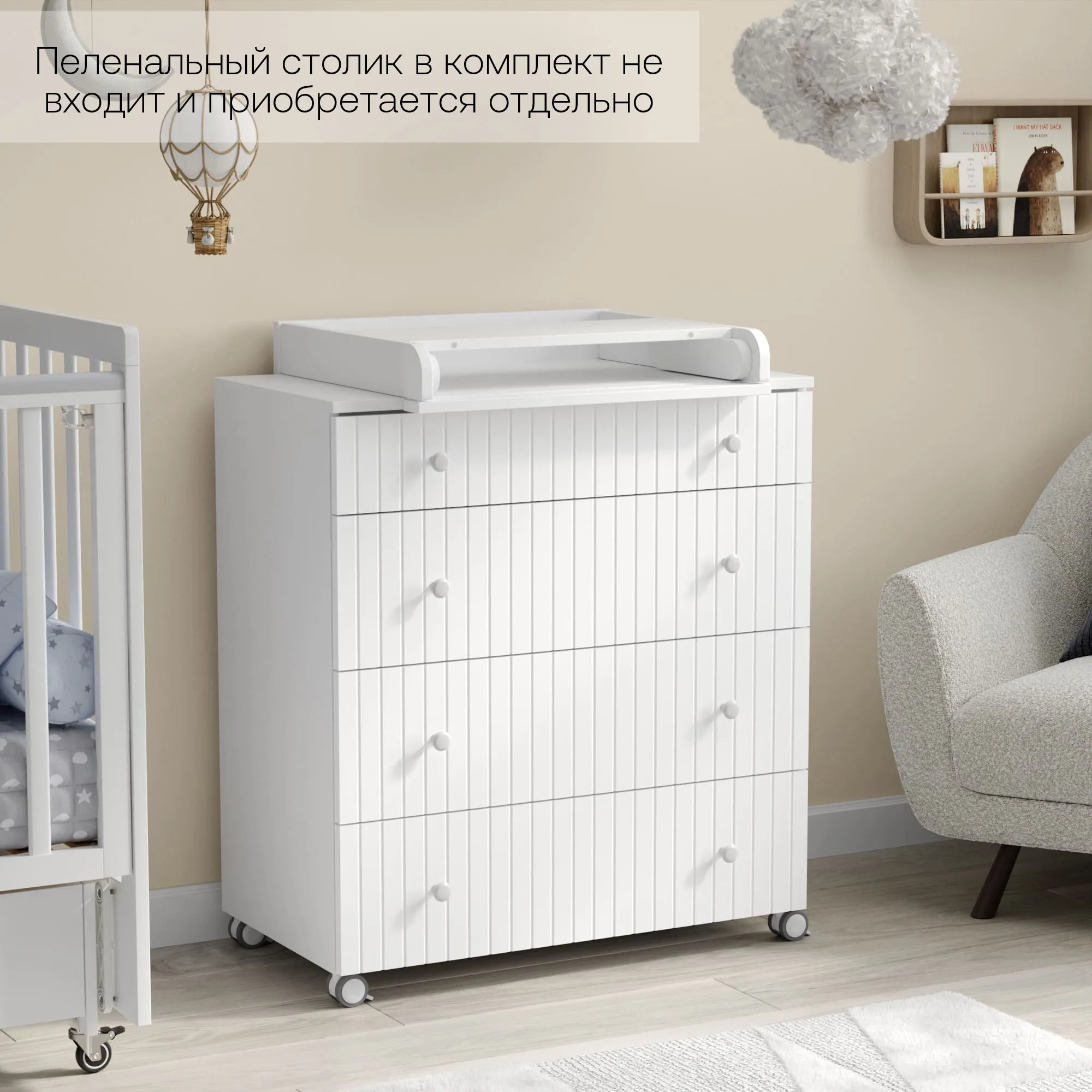 - Можно использовать, как с пеленальным столиком, так и без (пеленальный столик в комплект не входит и приобретается отдельно)