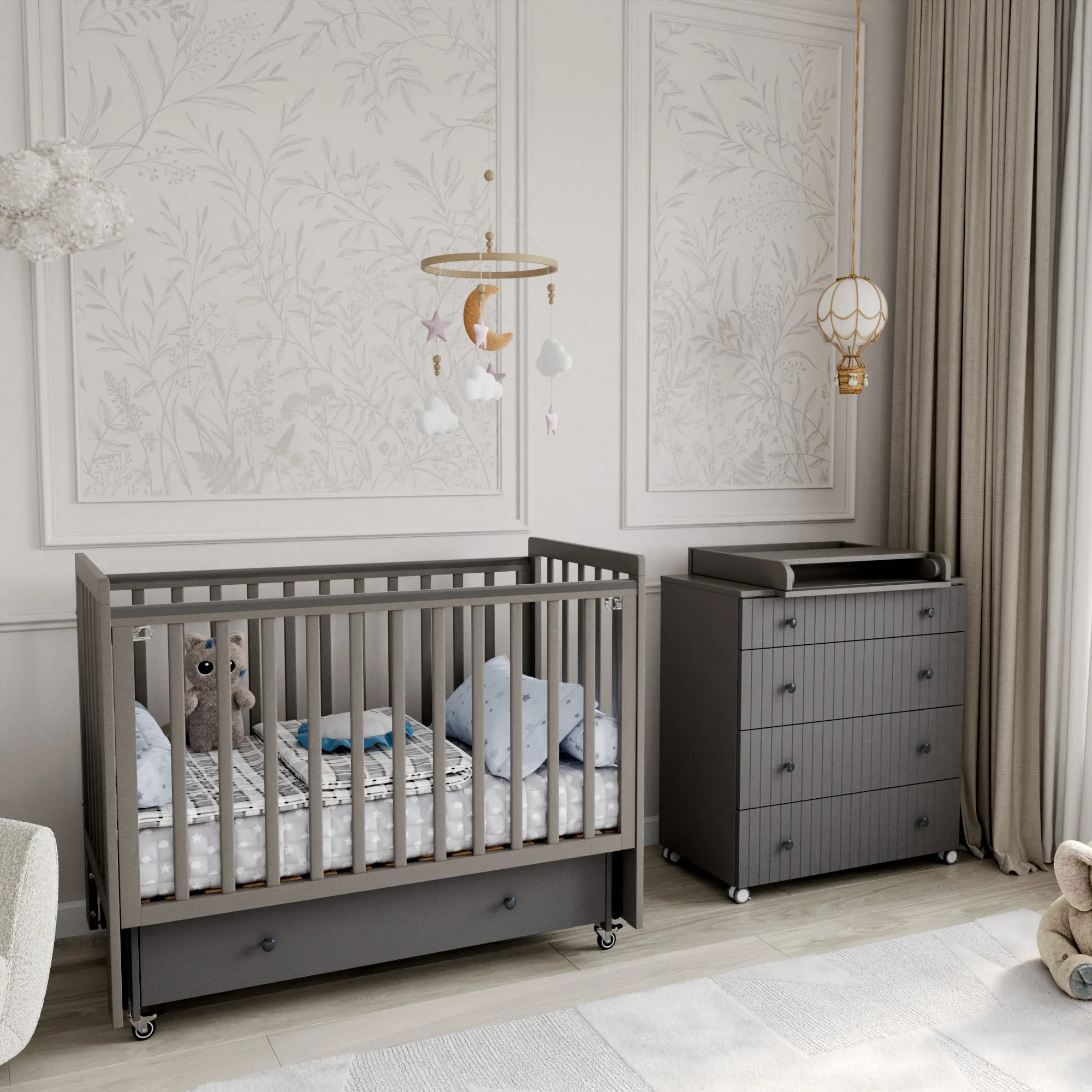 Комод Happy Baby FIOKI с принтом с пеленальным столиком 91036