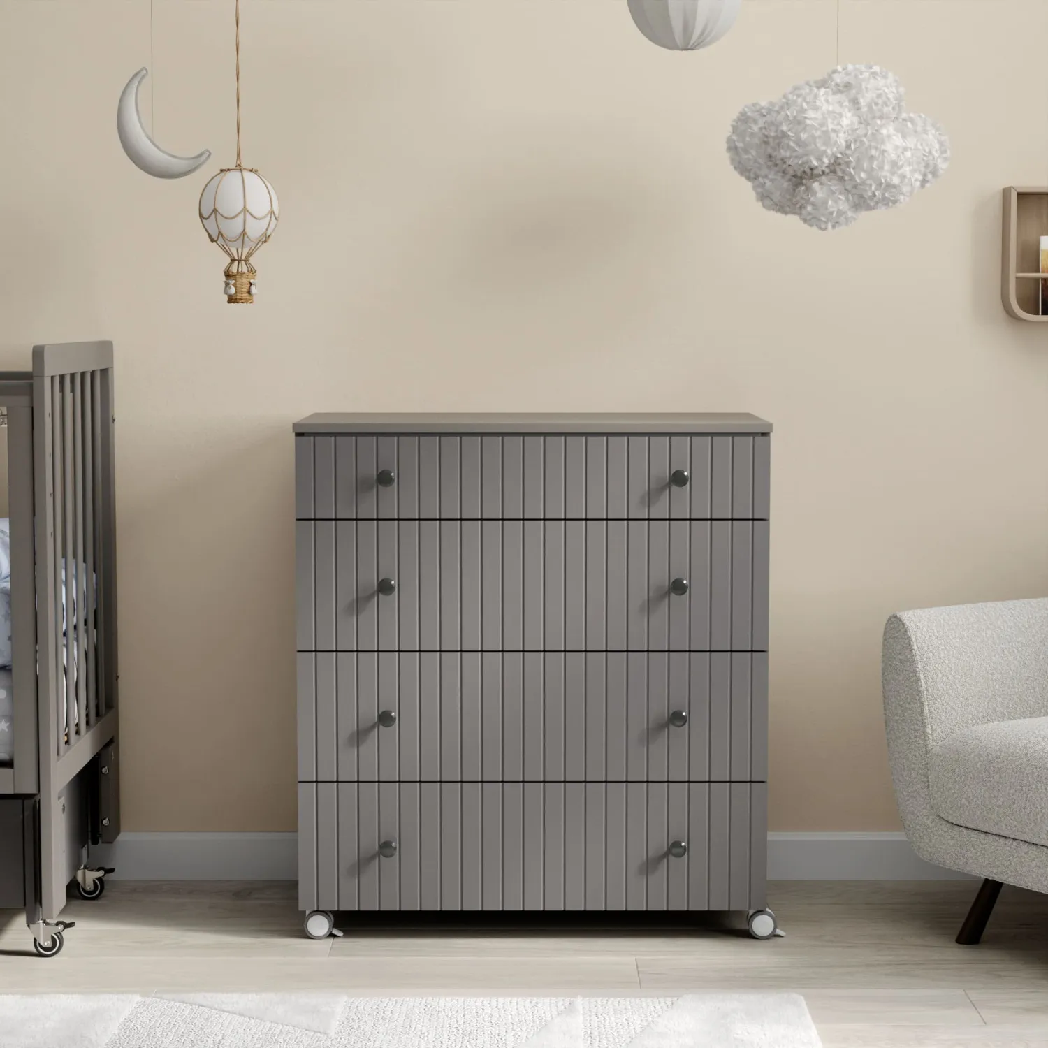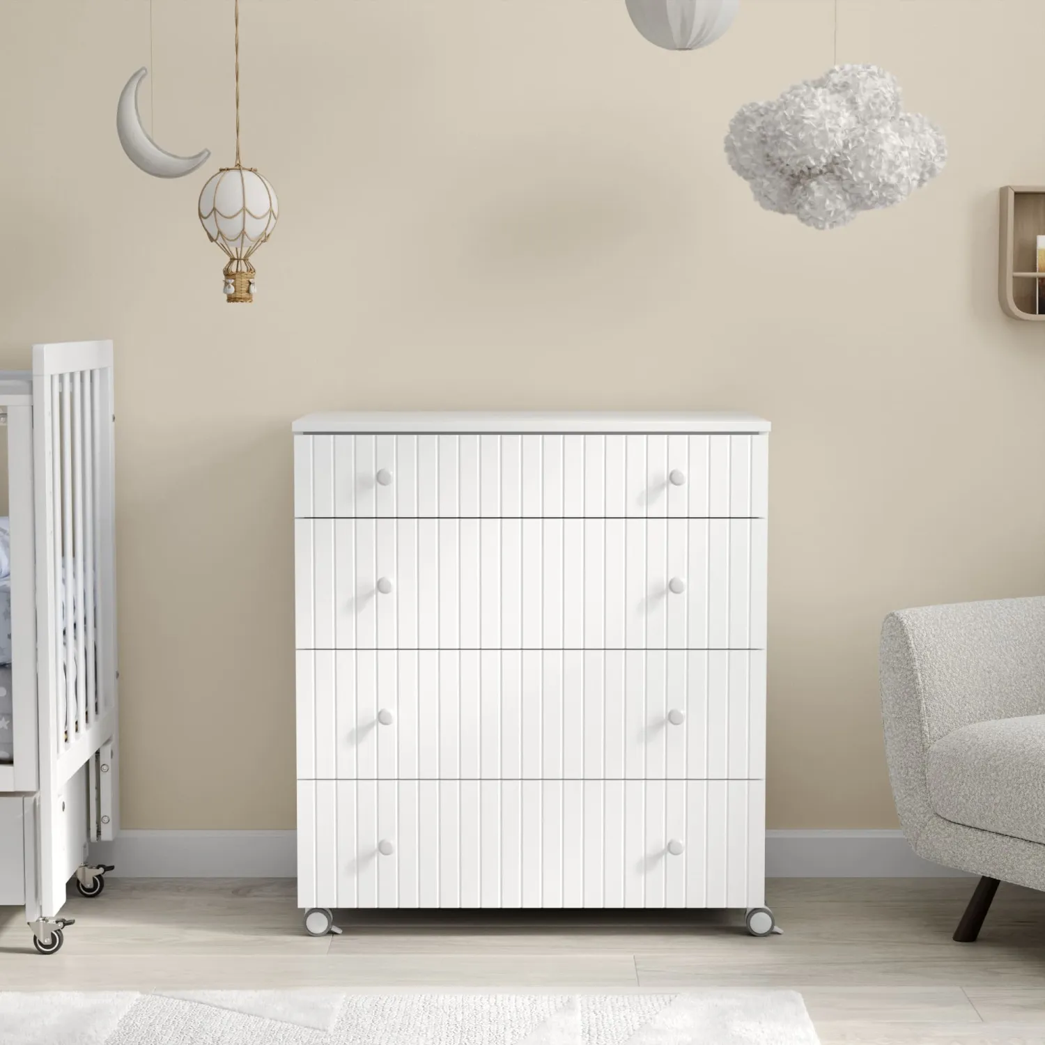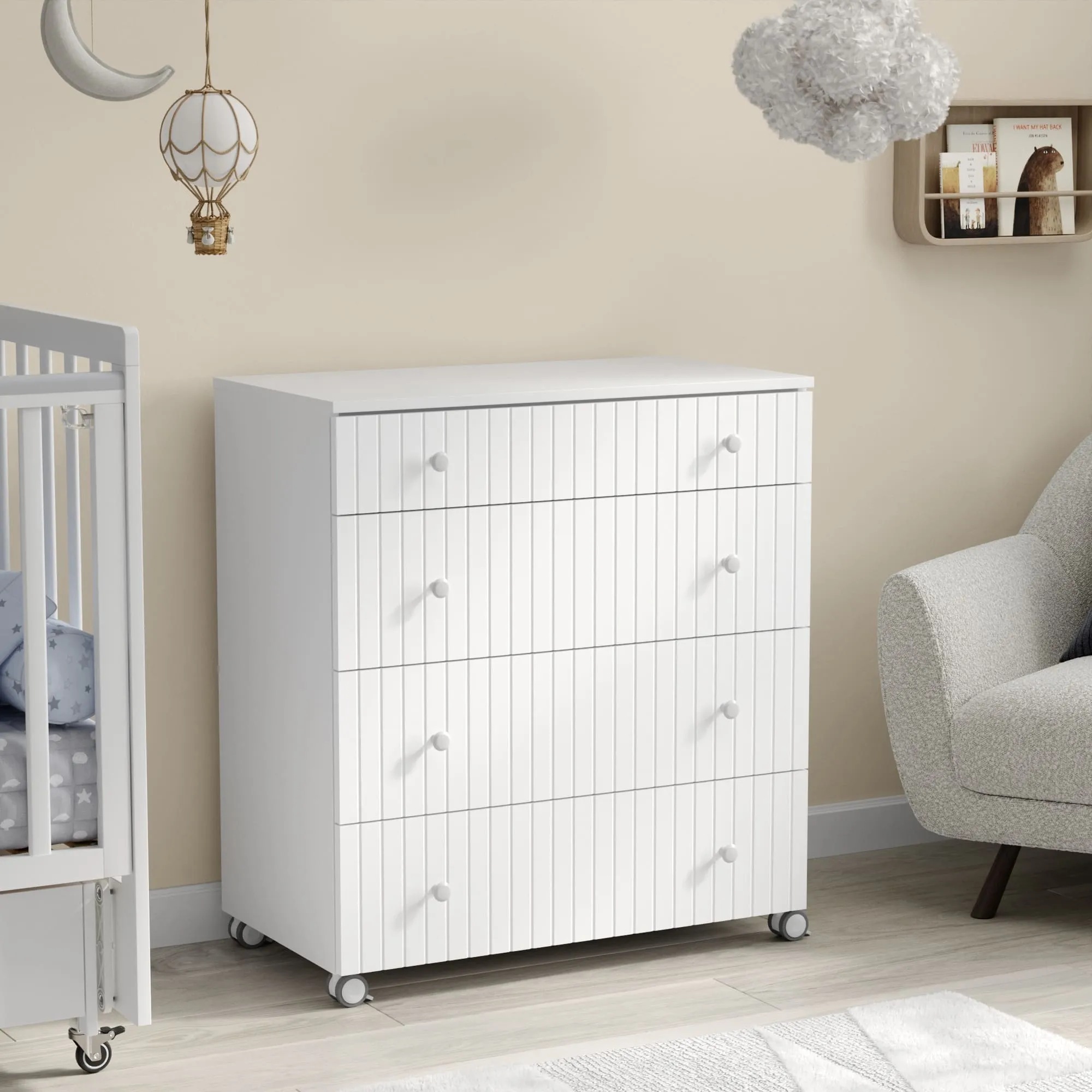 - Комод имеет колеса со стопором