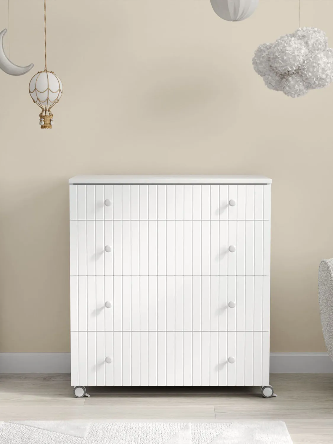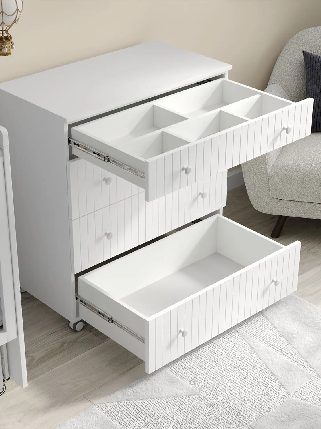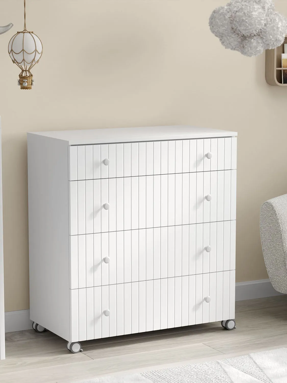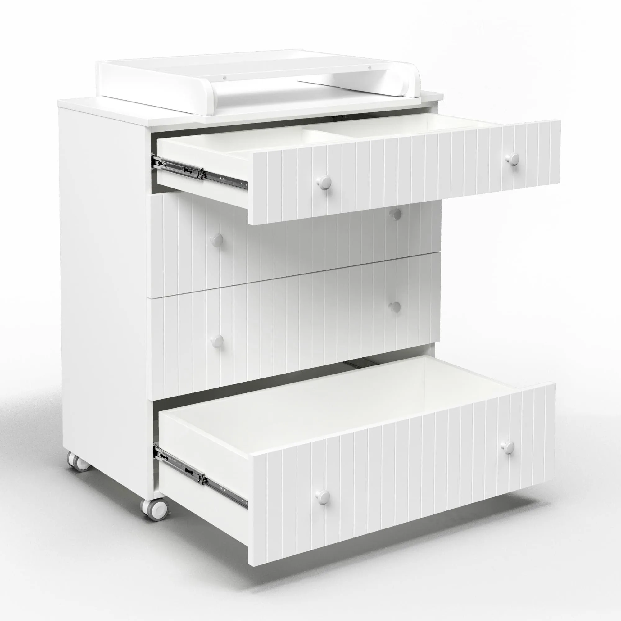- Комод имеет колеса со стопором