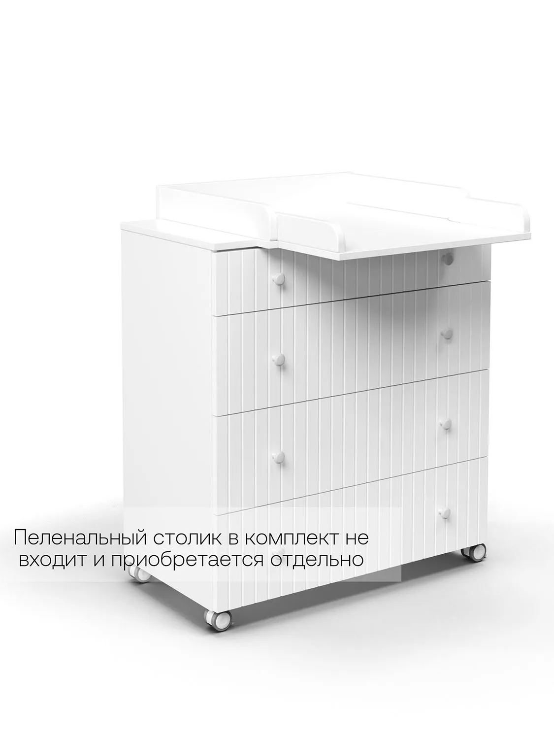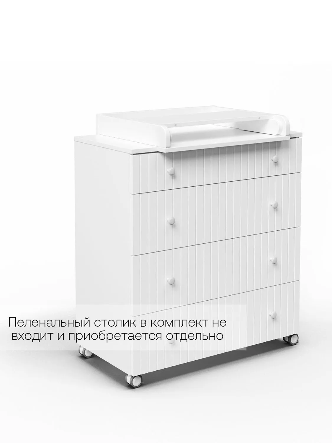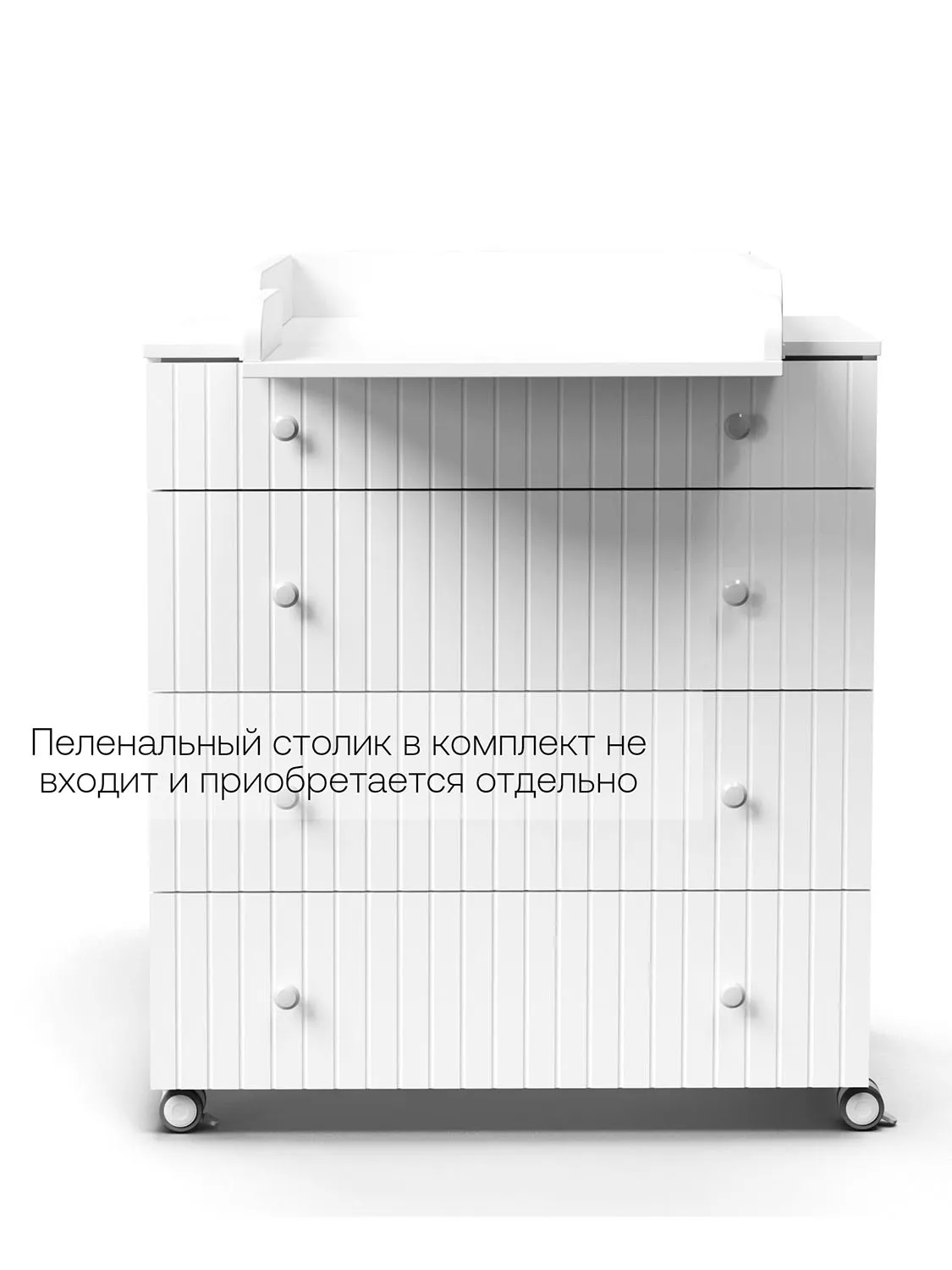 Данный комод можно использовать, как с пеленальным столиком, так и без. Пеленальный столик в комплект не входит и приобретается отдельно.