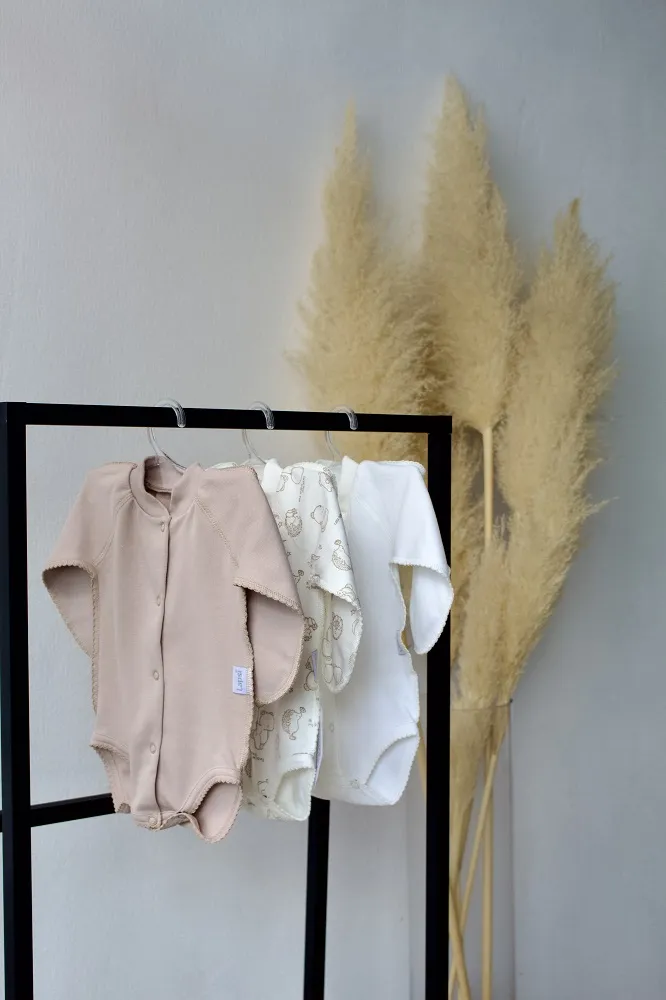 Для новорожденных предусмотрены манжеты-антицарапки на ручках, чтобы малыш не потревожил себя во время сна. Боди сделано из 100% хлопка со швами наружу, подходит для чувствительной и нежной детской кожи.