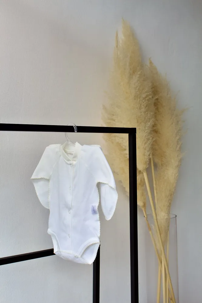 Для новорожденных предусмотрены манжеты-антицарапки на ручках, чтобы малыш не потревожил себя во время сна. Боди сделано из 100% хлопка со швами наружу, подходит для чувствительной и нежной детской кожи.