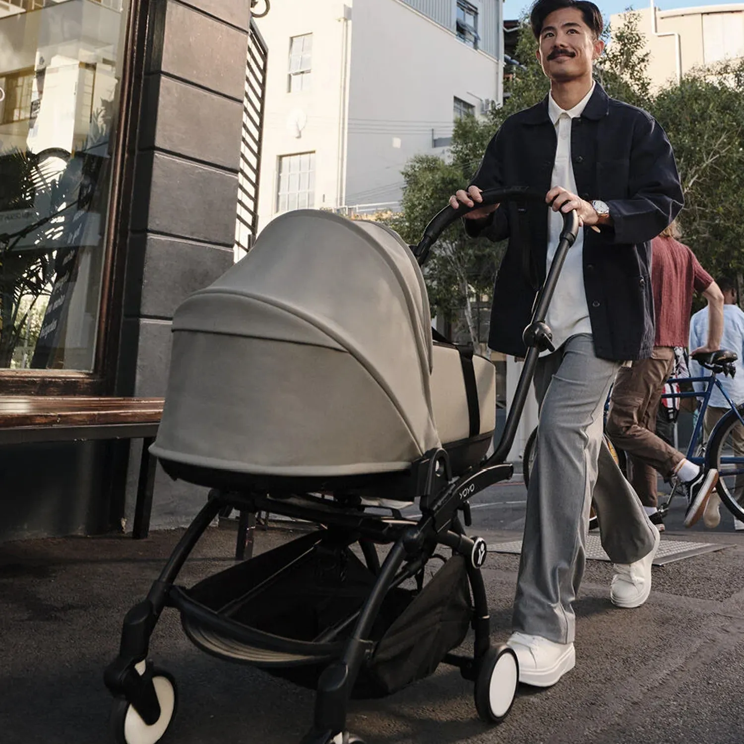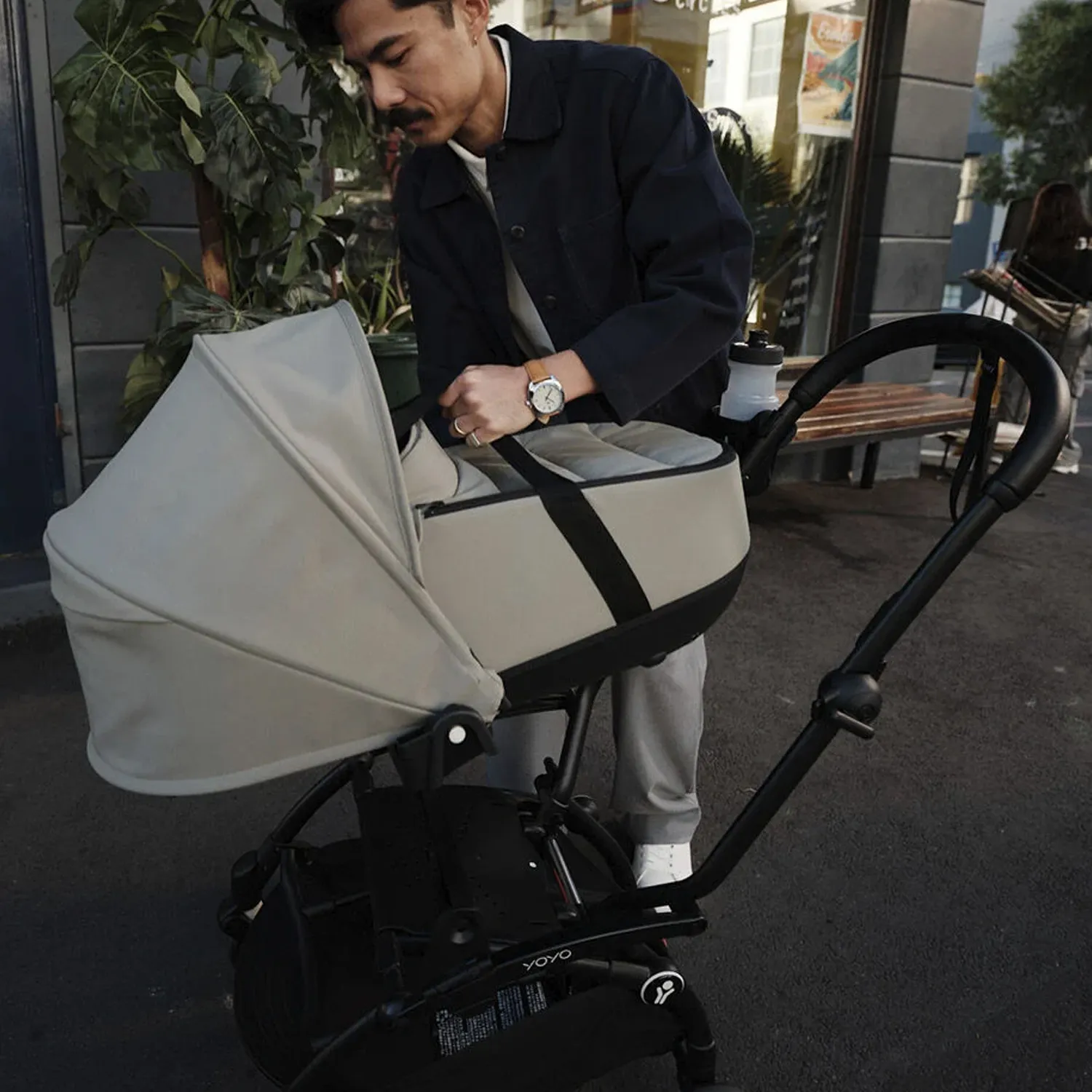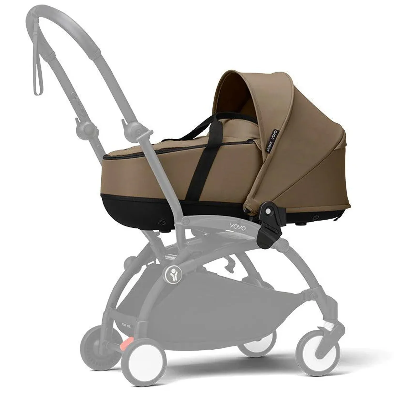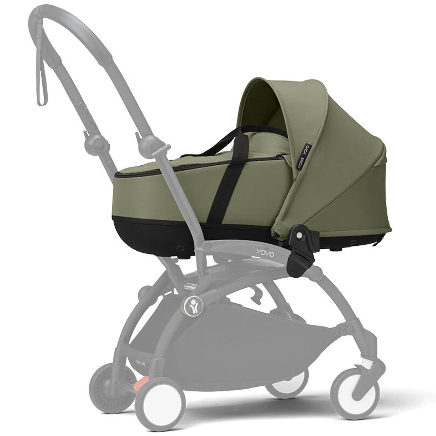 - Люлька для новорожденного легко крепится к раме YOYO³ и может переноситься вручную