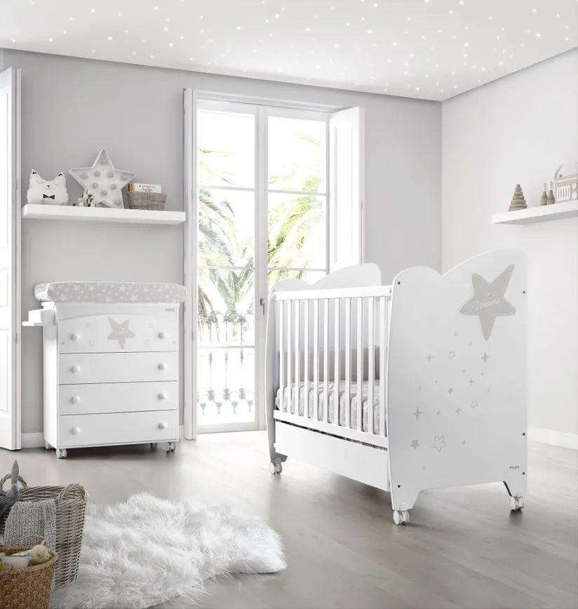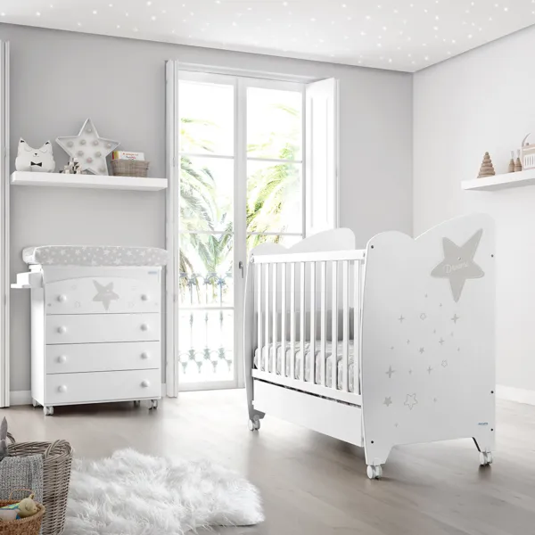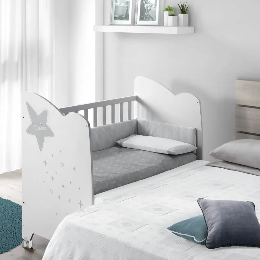Стильный комплект для новорожденных, дизайн со звездочкой:- Приставная кроватка 120x60 Micuna Estela (3 уровня ложа, регулируемый съемный боковой бортик)