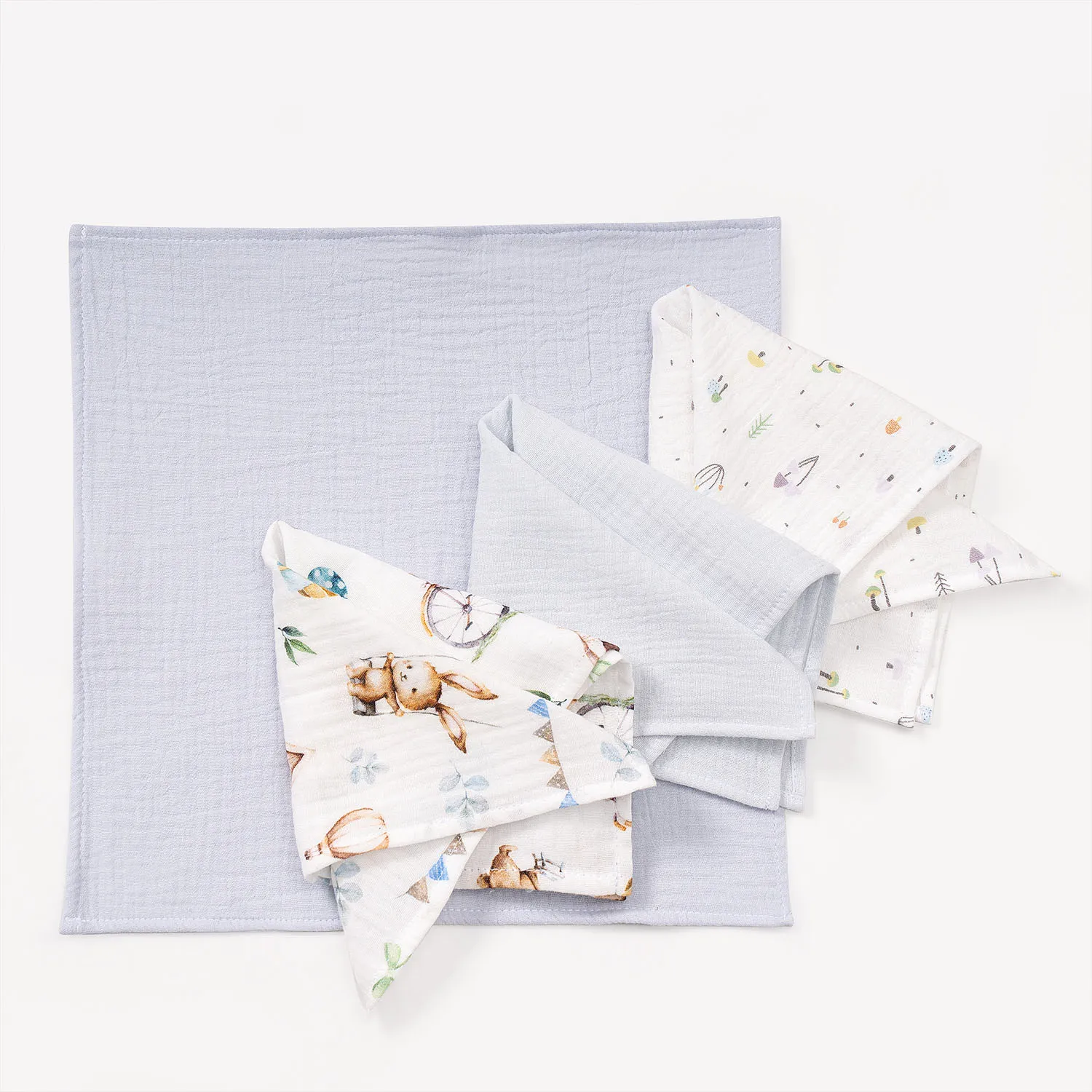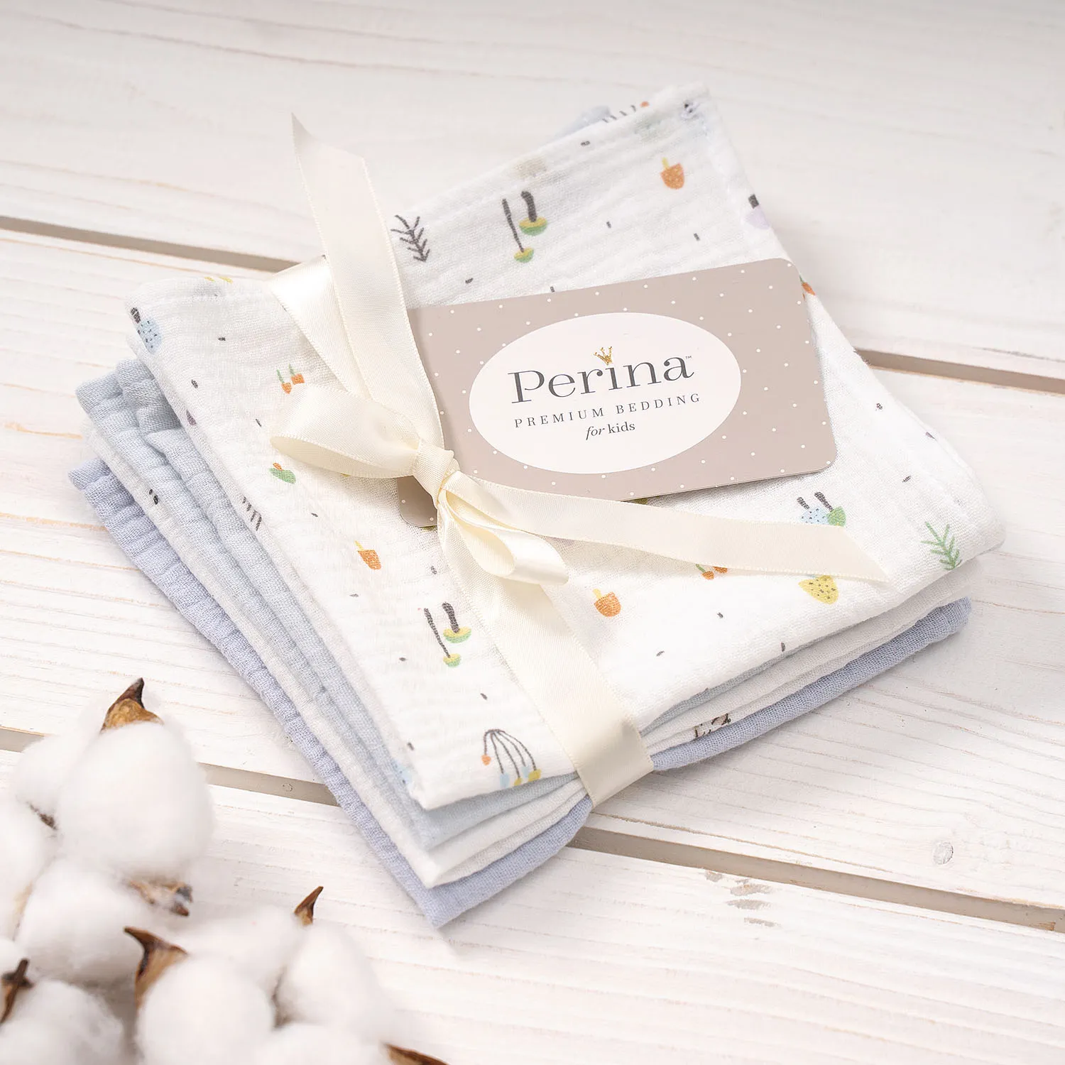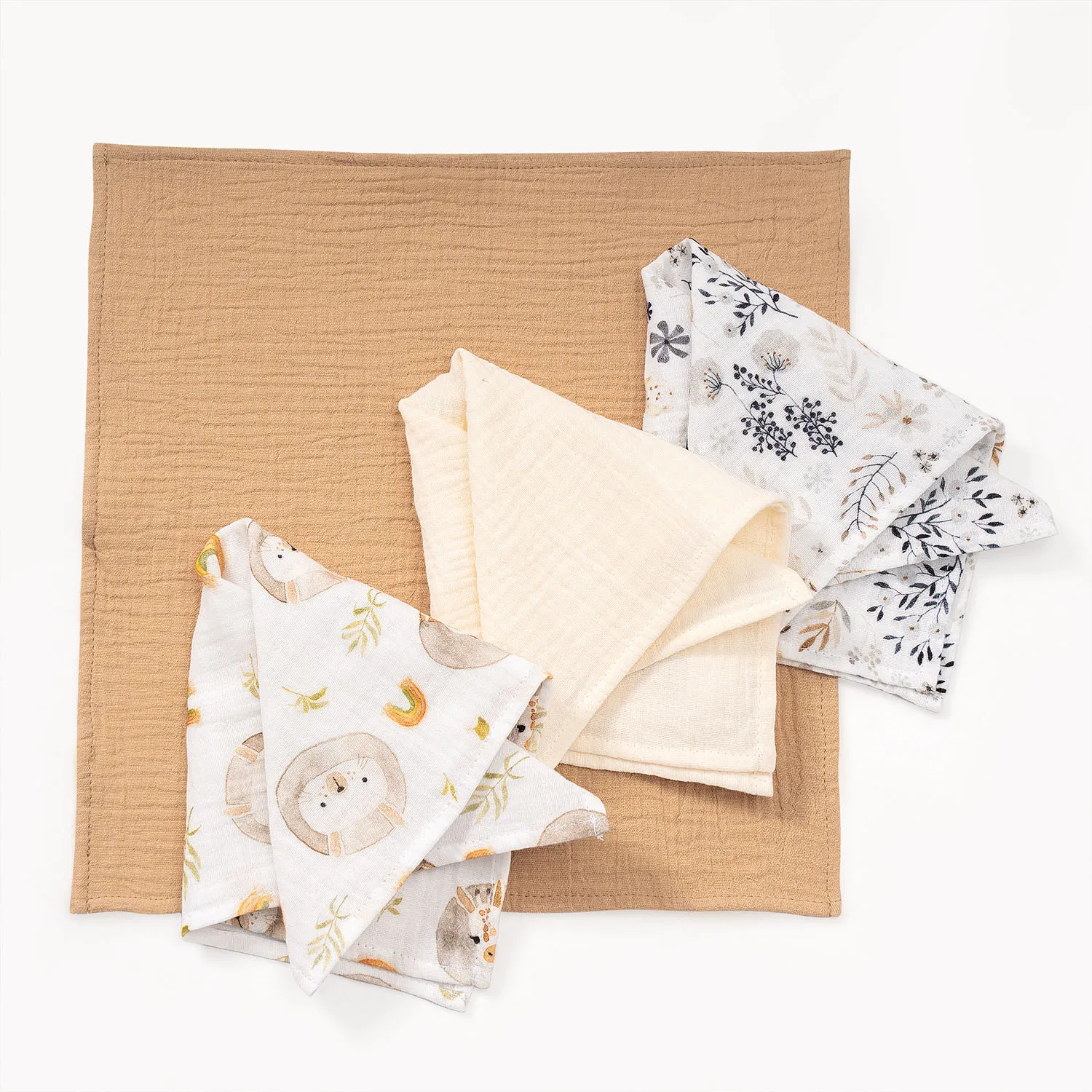Салфетки, изготовленные из жатого муслина (100% эко хлопок), идеально подходят для деликатной заботы о новорожденном малыше. Они мягкие, нежные и при этом прочные, что делает их подходящими с первых дней жизни. Эти платочки хорошо впитывают влагу и быстро сохнут после стирки.