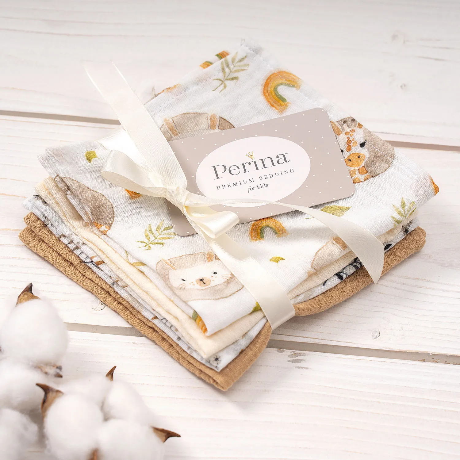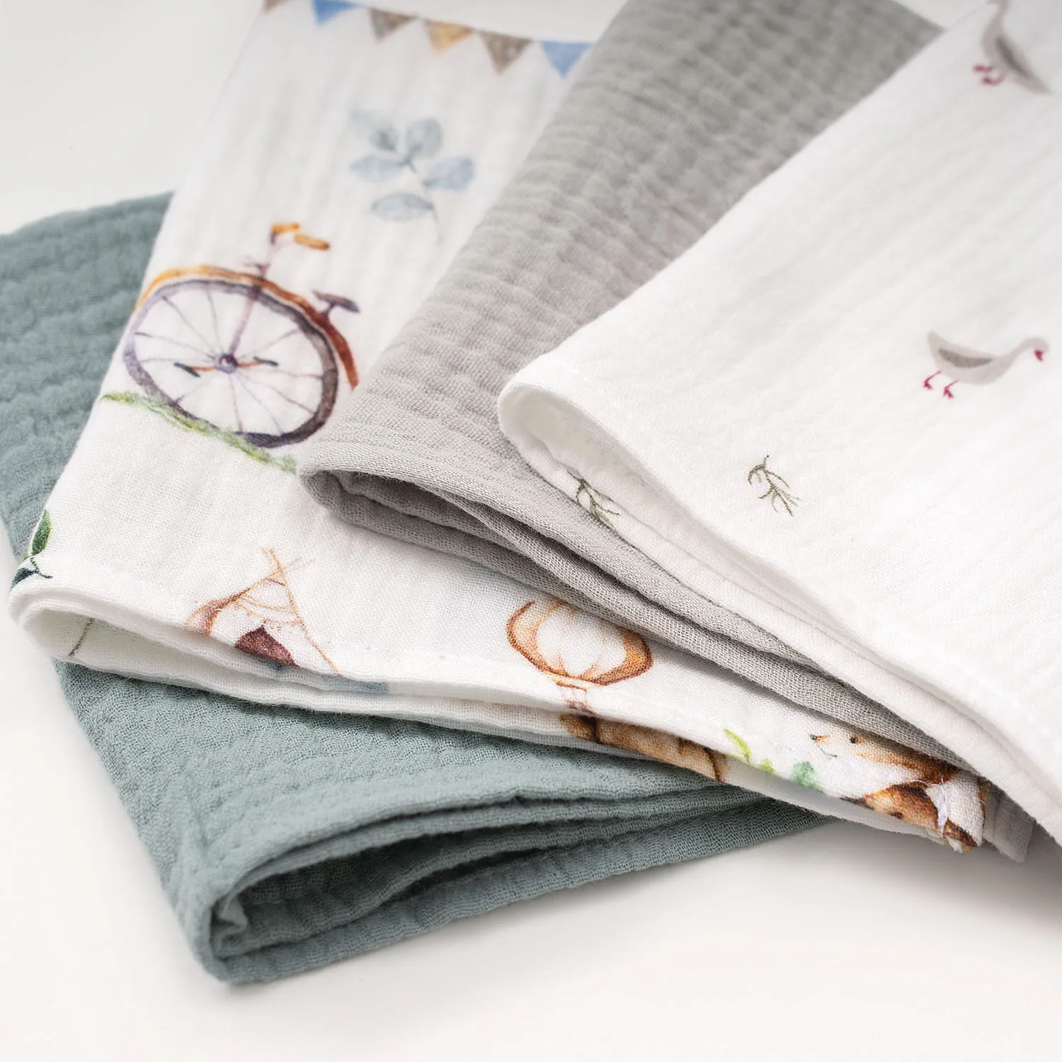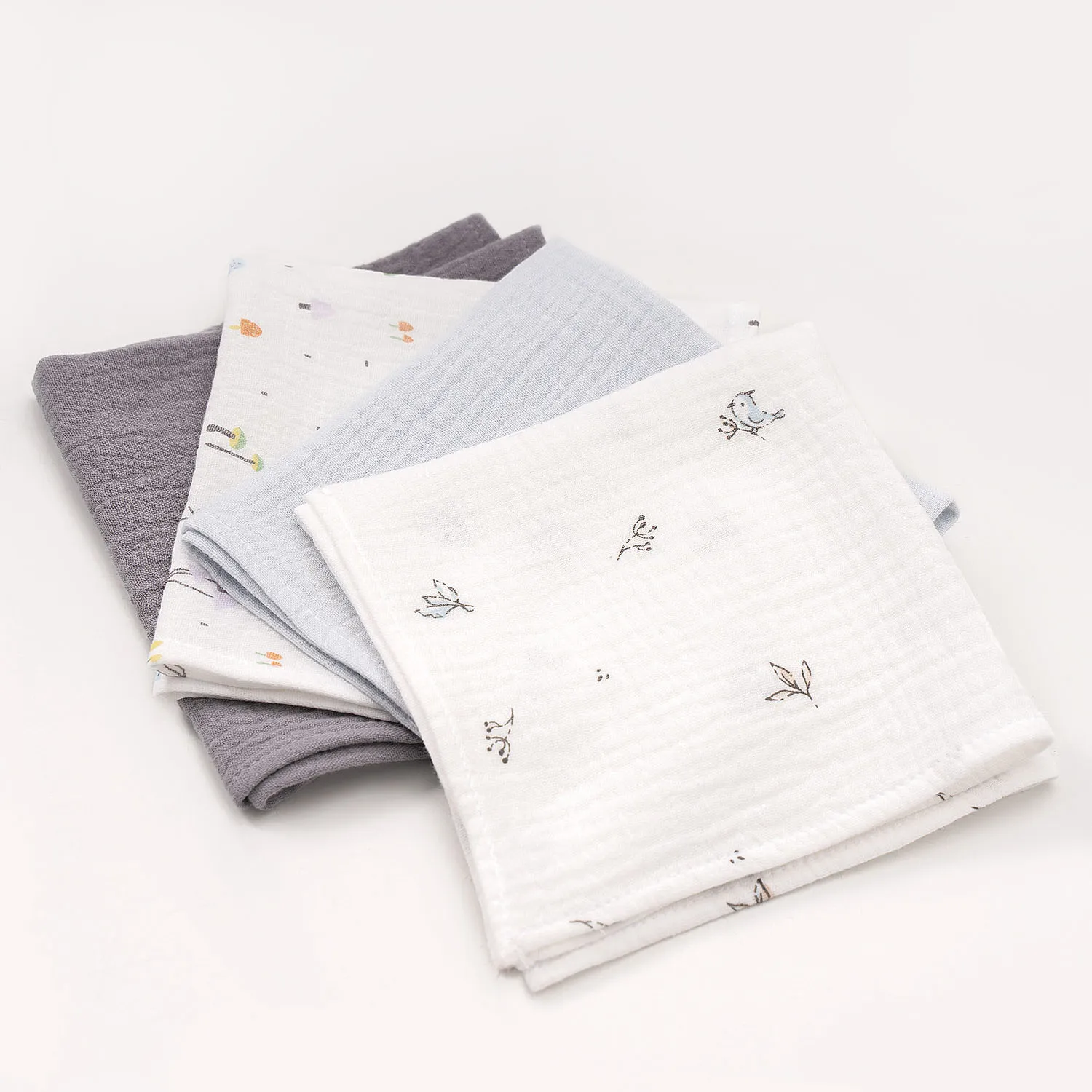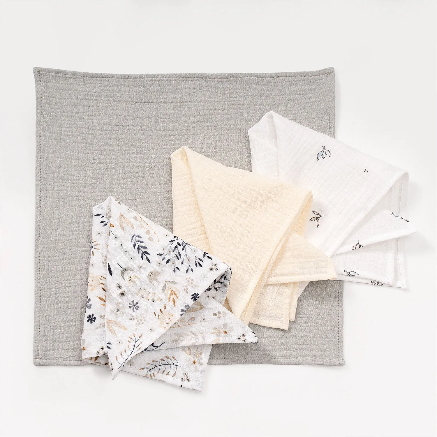 Салфетки, изготовленные из жатого муслина (100% эко хлопок), идеально подходят для деликатной заботы о новорожденном малыше. Они мягкие, нежные и при этом прочные, что делает их подходящими с первых дней жизни. Эти платочки хорошо впитывают влагу и быстро сохнут после стирки.