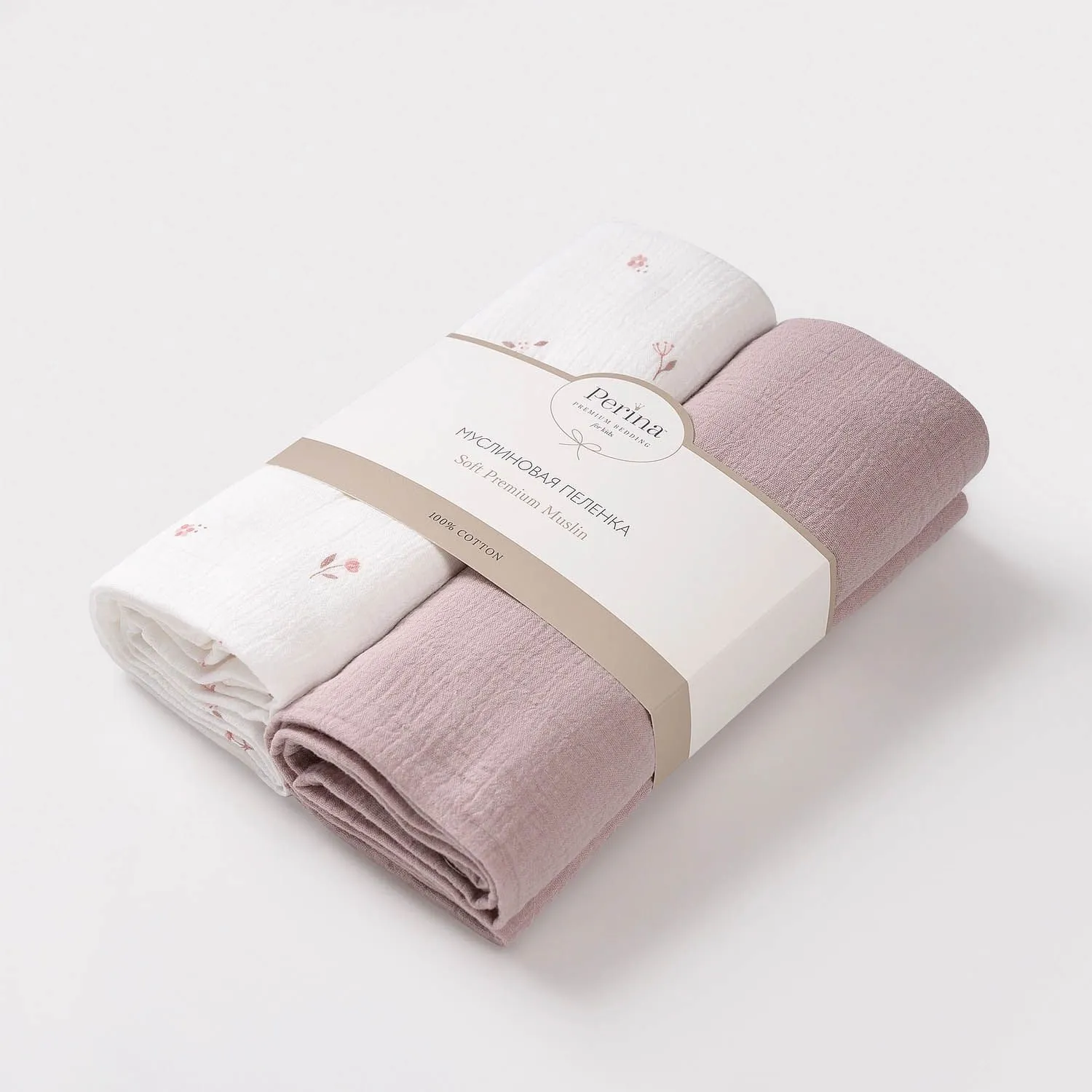 Двухслойные муслиновые пелёнки из 100% хлопка особенно нежно касаются кожи малыша. Они легкие и воздушные, мягко укутывают ребёнка, как невесомое облачко!