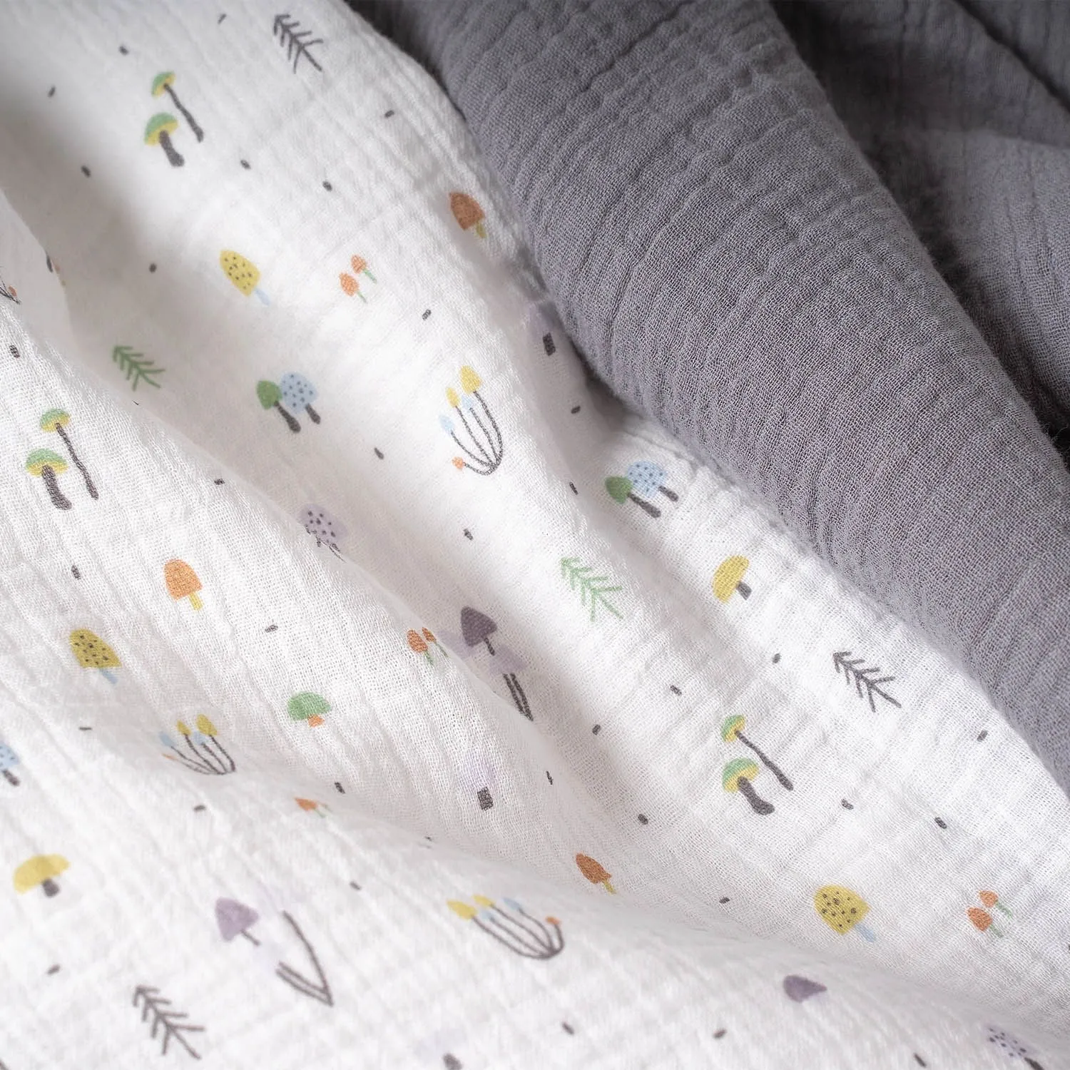 Ткань — премиальный жатый муслин высокого качества. Такая ткань хорошо пропускает воздух, прекрасно впитывает воду и быстро сохнет.