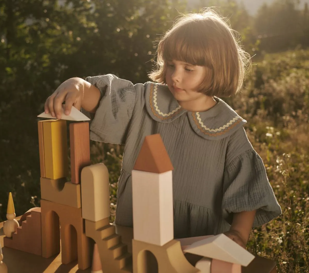 Современные строительные блоки для вечной игры. Лестницы, арки, крыши, двери. Жилые блоки познакомят самых маленьких игроков с формами, текстурами и изысканными цветами. Если положить один элемент поверх другого, получится башня. По мере того как ребенок растет, игры со строительными кубиками тоже растут. Конструкции усложняются, у ребенка появляется чувство равновесия и устойчивости. Во время игры вы можете рассказать ребенку о римской архитектуре, готике и Баухаузе.