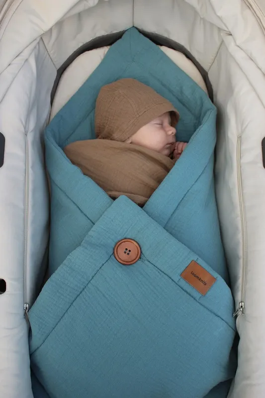 Лёгкий, почти невесомый конверт-плед из муслина идеально подойдет для летних прогулок и поездок на море. Можно укрыть малыша от ветра или использовать как матрасик для игр.