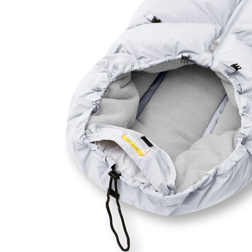 - Верхняя часть затягивается в капюшон и плотно фиксируется вокруг головки ребенка для защиты шеи и груди от продувания
