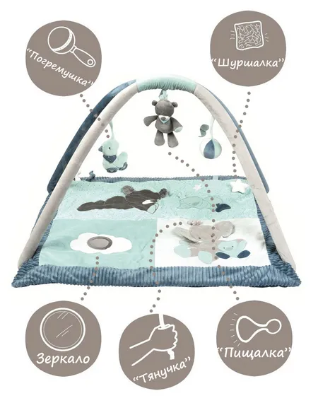 Коврик детский игровой Nattou FELIX & LEO Барсук и Ослик с деревянной аркой 595186