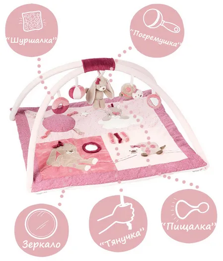 Коврик детский развивающий Nattou Nina, Jade & Lili Кролик, Единорог, Черепашка 987264