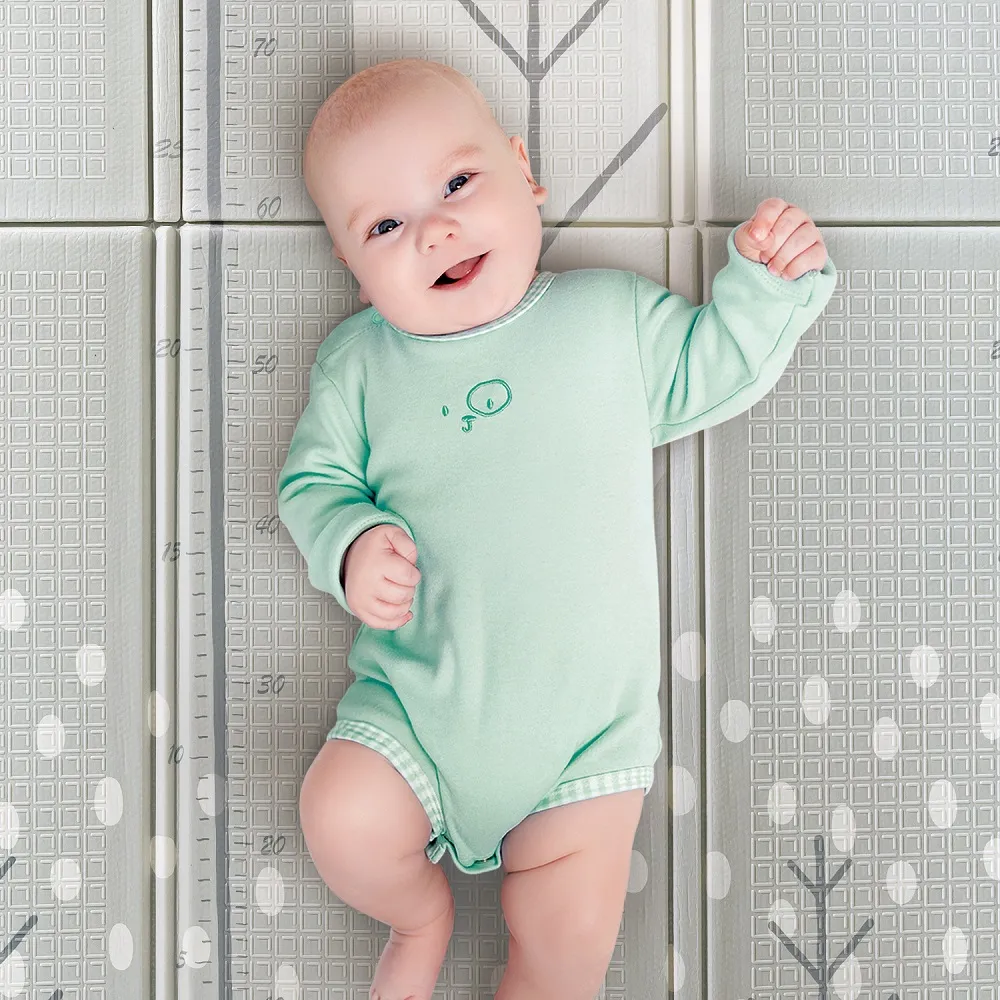 - Не промокает, не пропускает холод, приятен на ощупь, смягчает любые падения при ползании и первых шагах