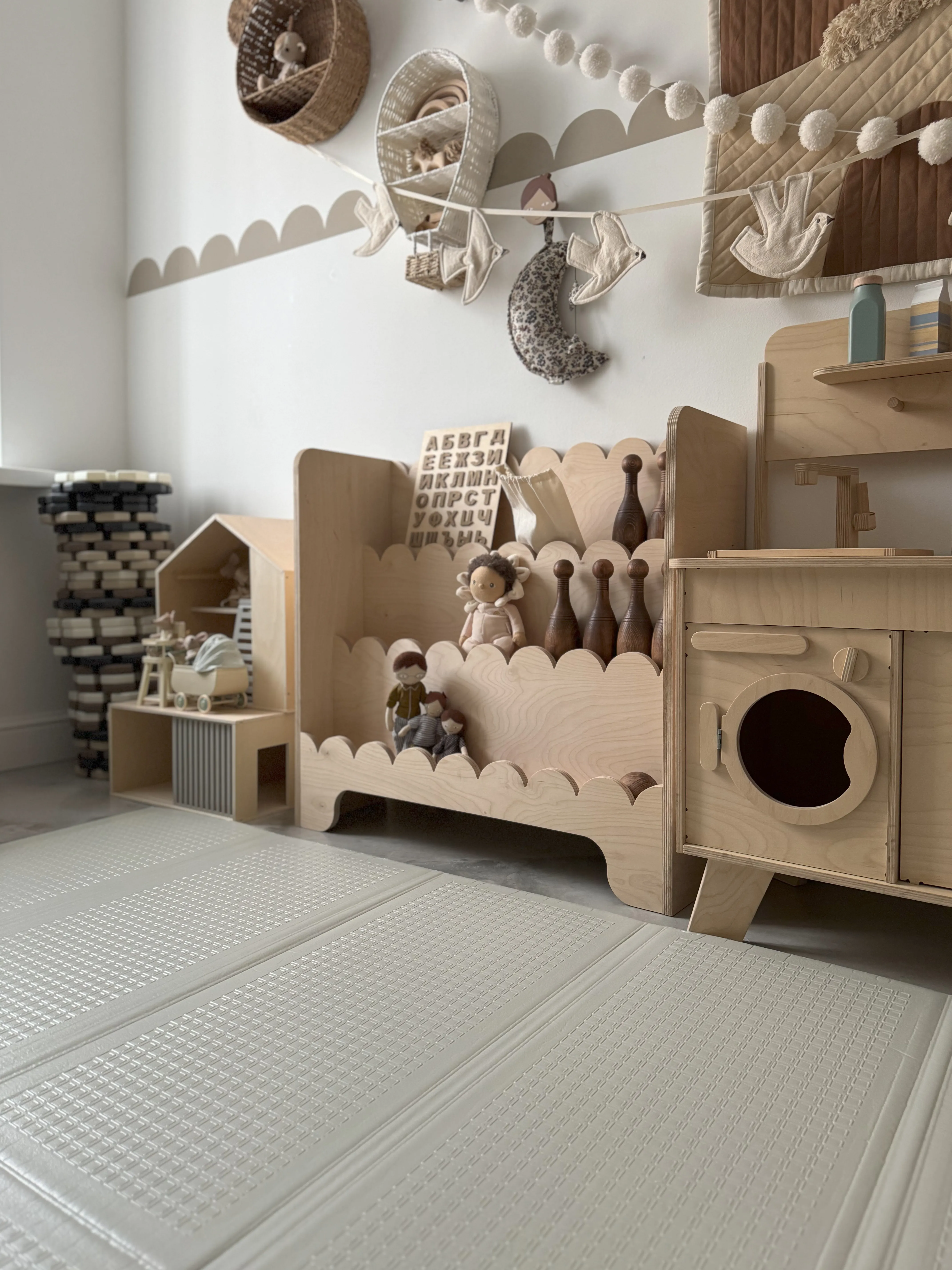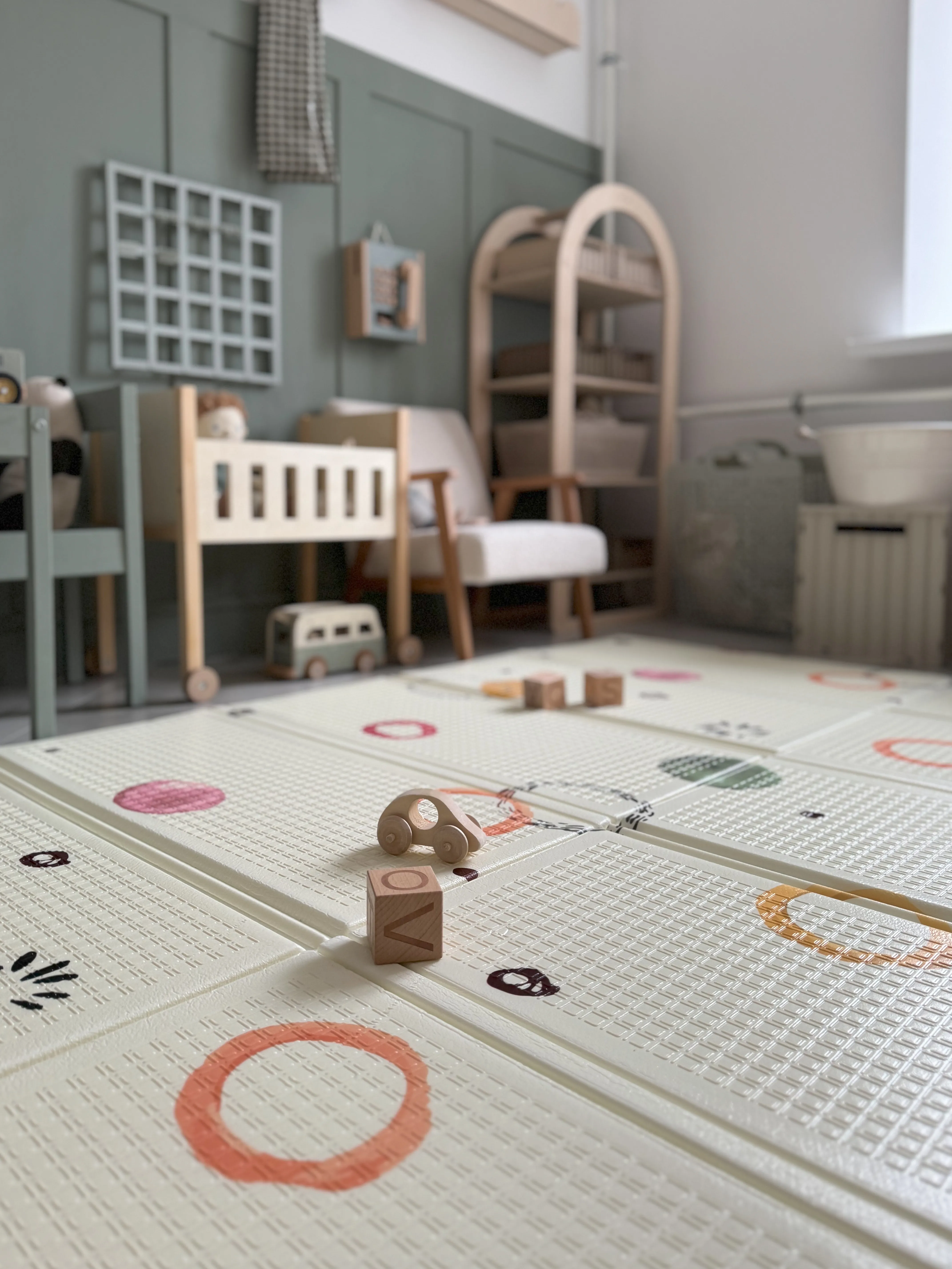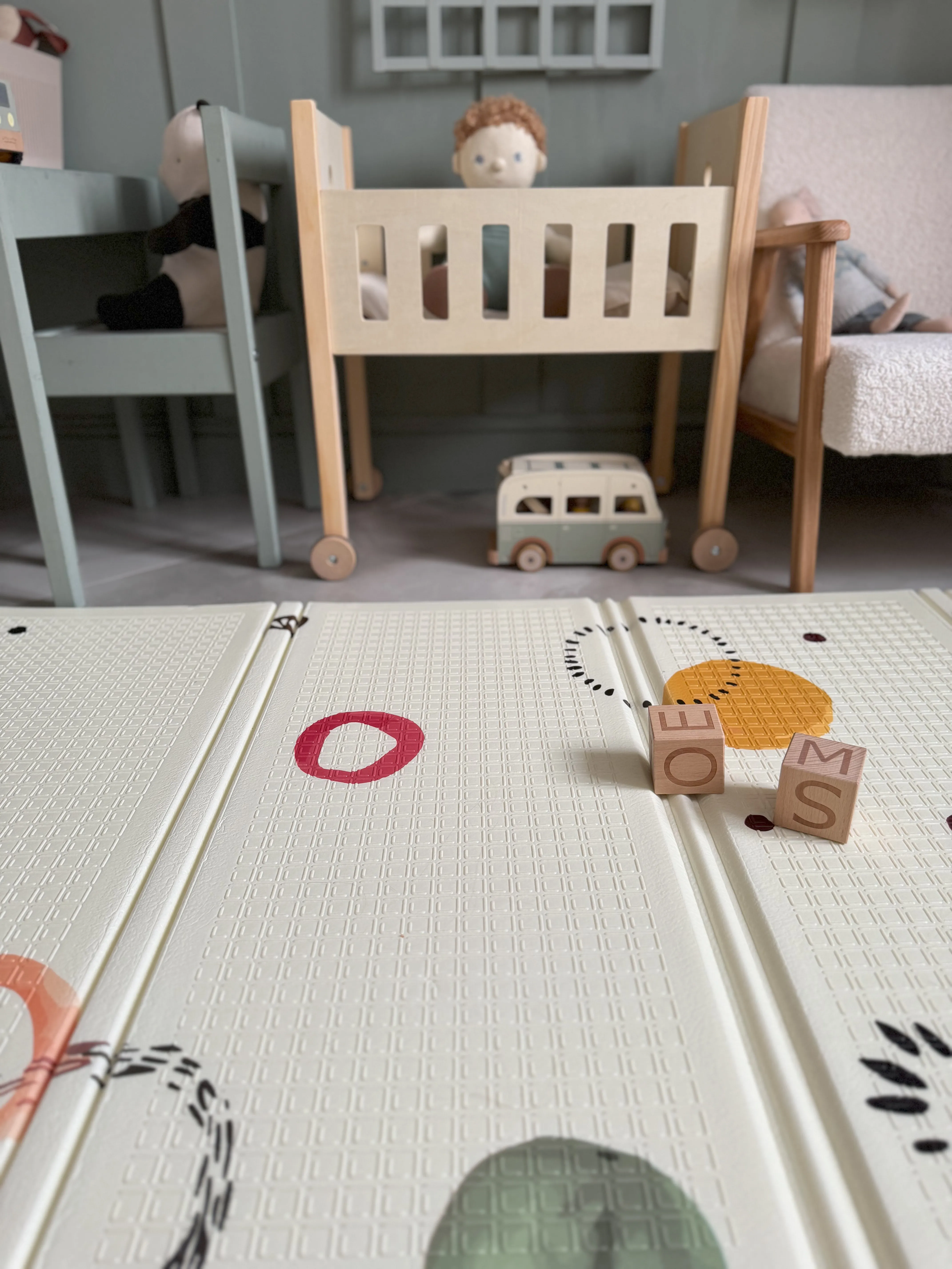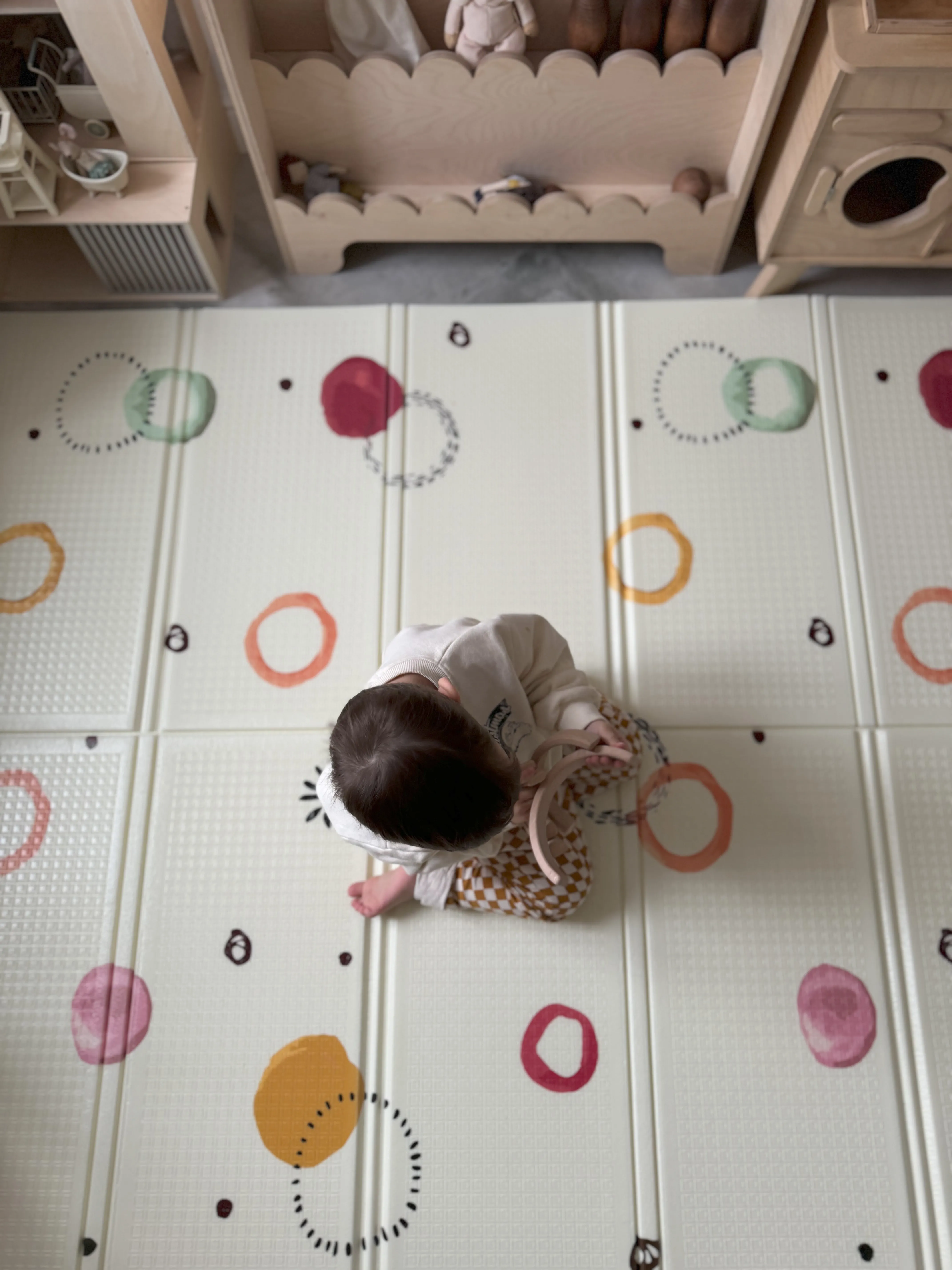 Рисунок нанесен на одну сторону, низ однотонный. Влагостойкое изделие легко мыть и дезинфицировать, в отличие от обычного ковра. Раскладной дизайн очень практичен в большом доме – перейти с малышом из детской комнаты в гостиную или на кухню не составит труда. Складной коврик удобно взять в дорогу или на улицу, поскольку в сложенном виде он занимает минимум пространства. Чистое игровое место всегда с собой!