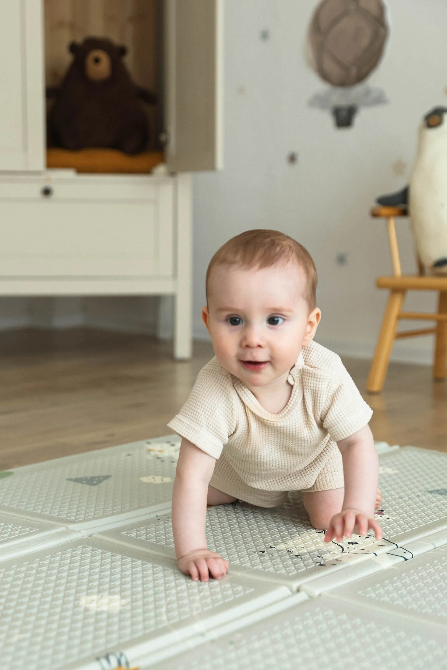 А для младенцев, осваивающих ползание, это крайне необходимая и незаменимая вещь. Изготовленный из вспененного полиэтилена коврик защищает от случайных травм, обладает термо эффектом и не проводит холод. Высококачественный материал абсолютно безопасен для здоровья и подходит даже для новорожденных.