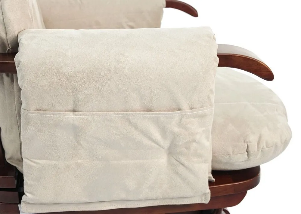 Это кресло создано для того, чтобы мама новорождённого малыша могла кормить свою крошку в идеальных условиях. Его форма с упругим сиденьем, мягкие подлокотники, на которые удобно опираться с ребёнком на руках, и подставка для ног выполнены так, чтобы кормящая мама получила возможность полностью расслабиться и почувствовать единение с ребёнком каждой клеточкой своего тела. Спинку можно откинуть и расположить в одной из 3-х позиций. По бокам, прямо под руками — два вместительных кармана для необходимых мелочей. Надёжный механизм плавно и бесшумно покачивает маму и малыша.