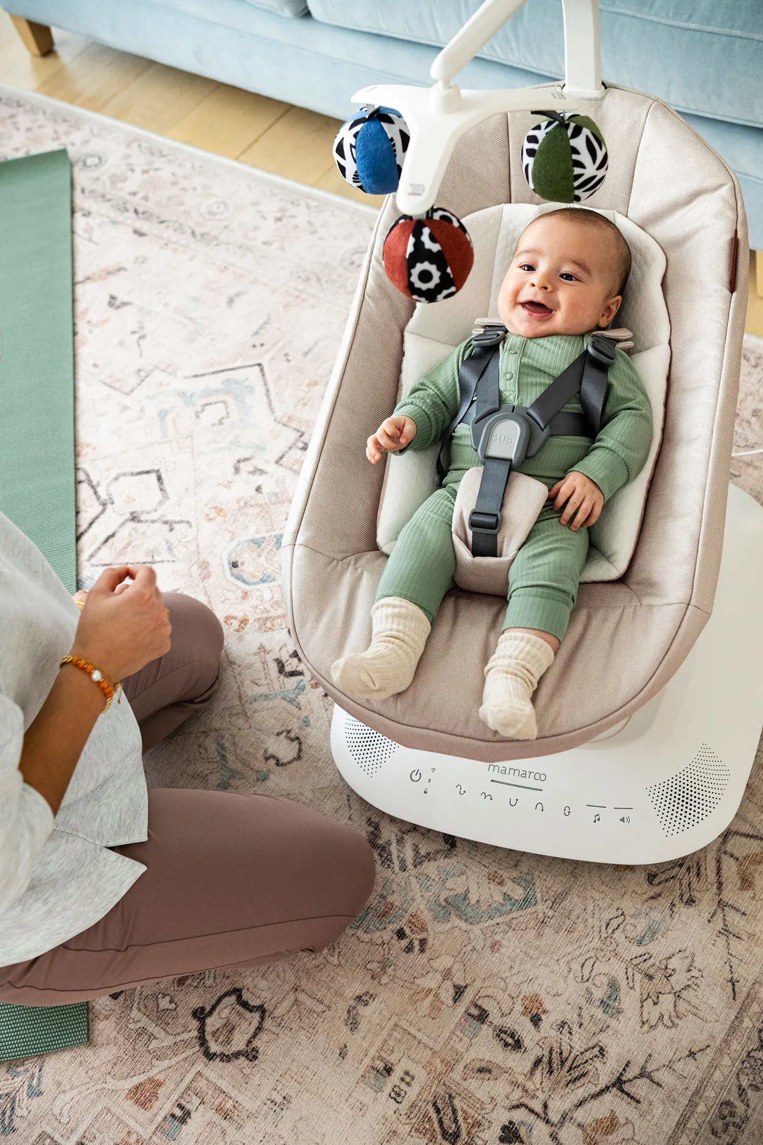 Мы понимаем, что безопасность и комфорт вашего малыша – ваш главный приоритет. Mamaroo® Smart Swing разработан с учетом всех аспектов.