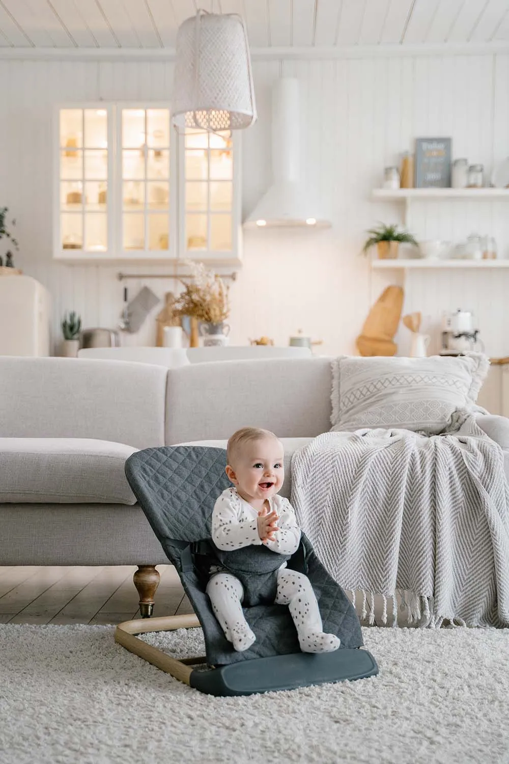 Кресло-шезлонг работает без батареек, в движение его приводит сам ребенок. Причем покачивания доставляют малышу неимоверную радость, одновременно он учится естественным образом удерживать равновесие и развивать моторные навыки.