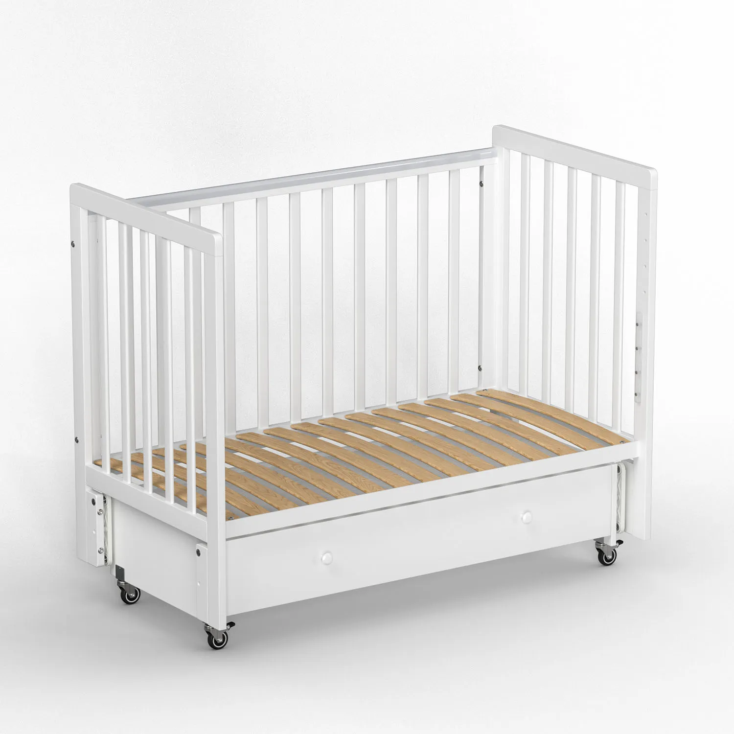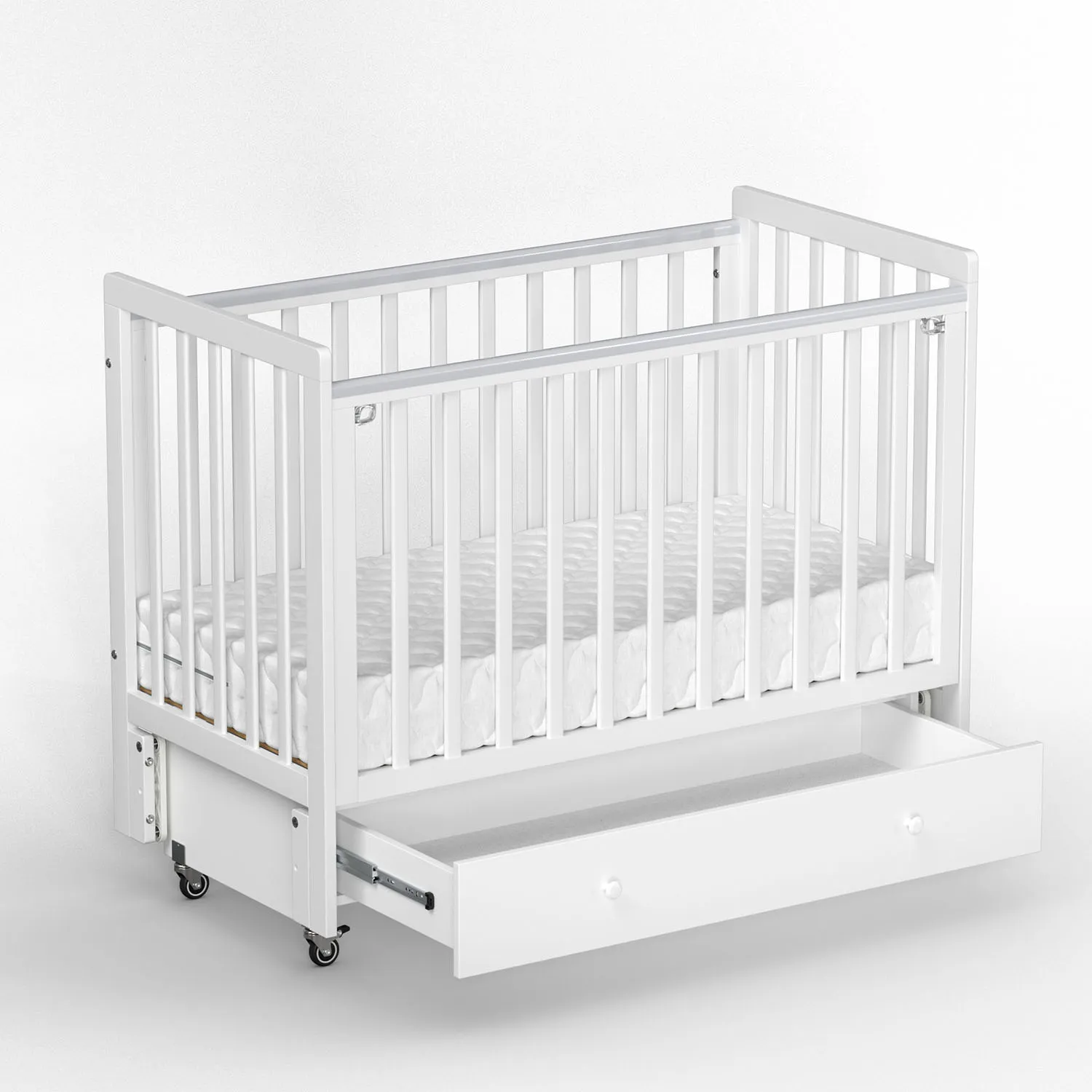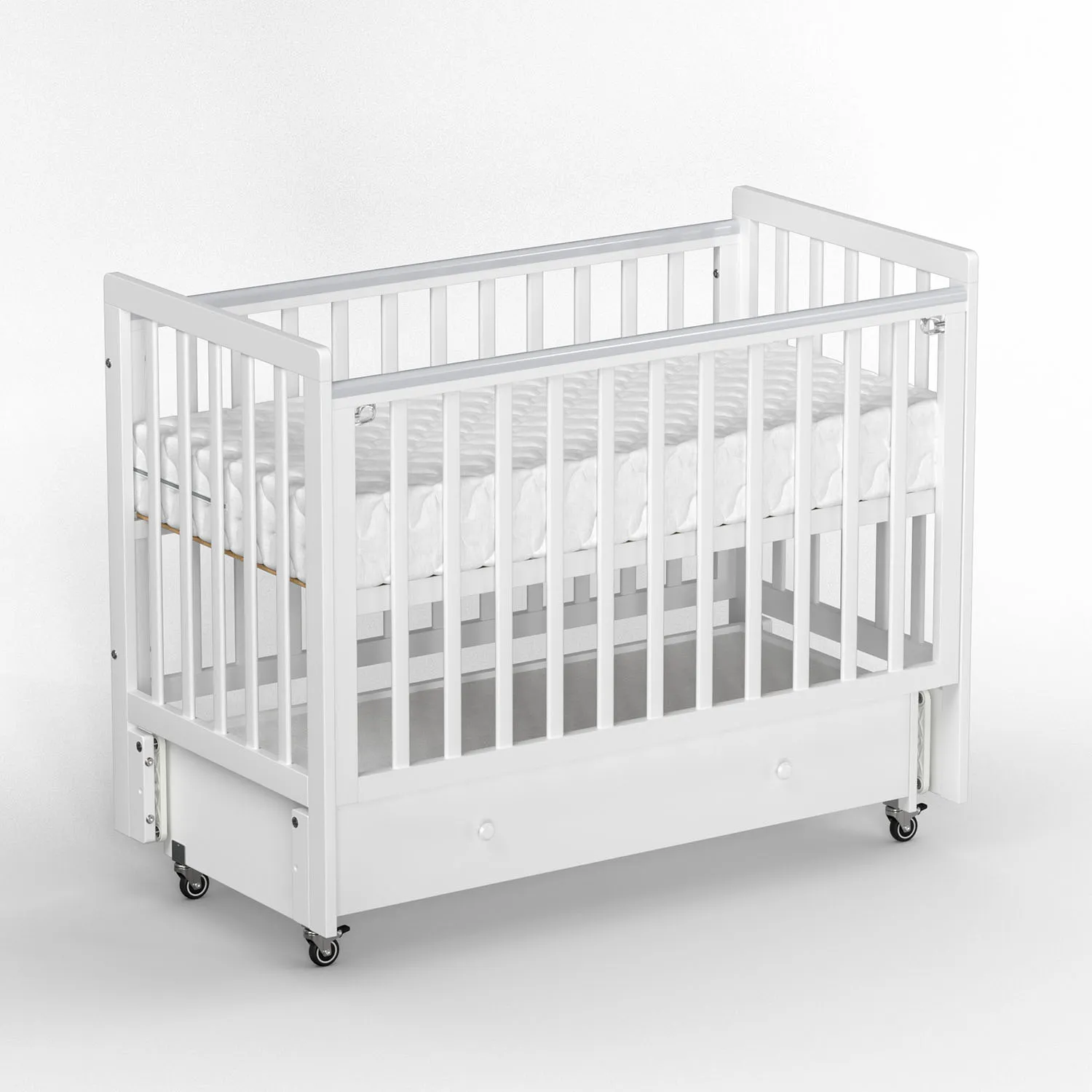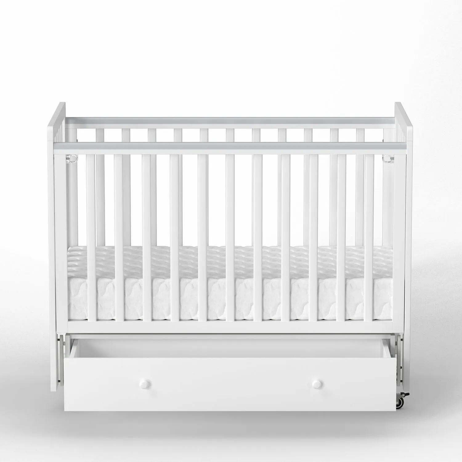 Кроватка Classic Sleep это эстетичный и практичный вариант кроватки без острых углов в комплекте с маятником и ящиком