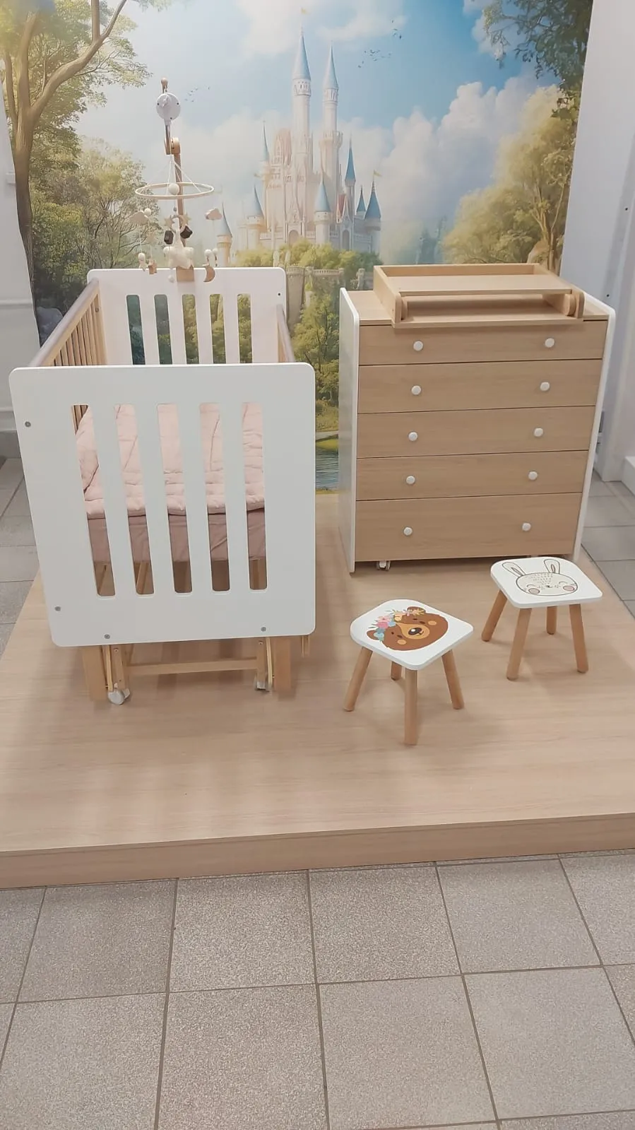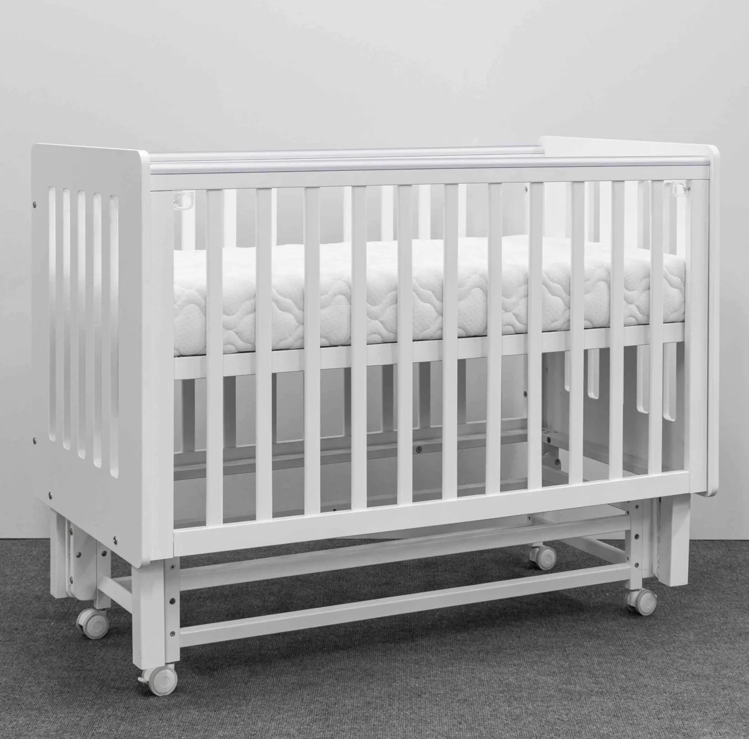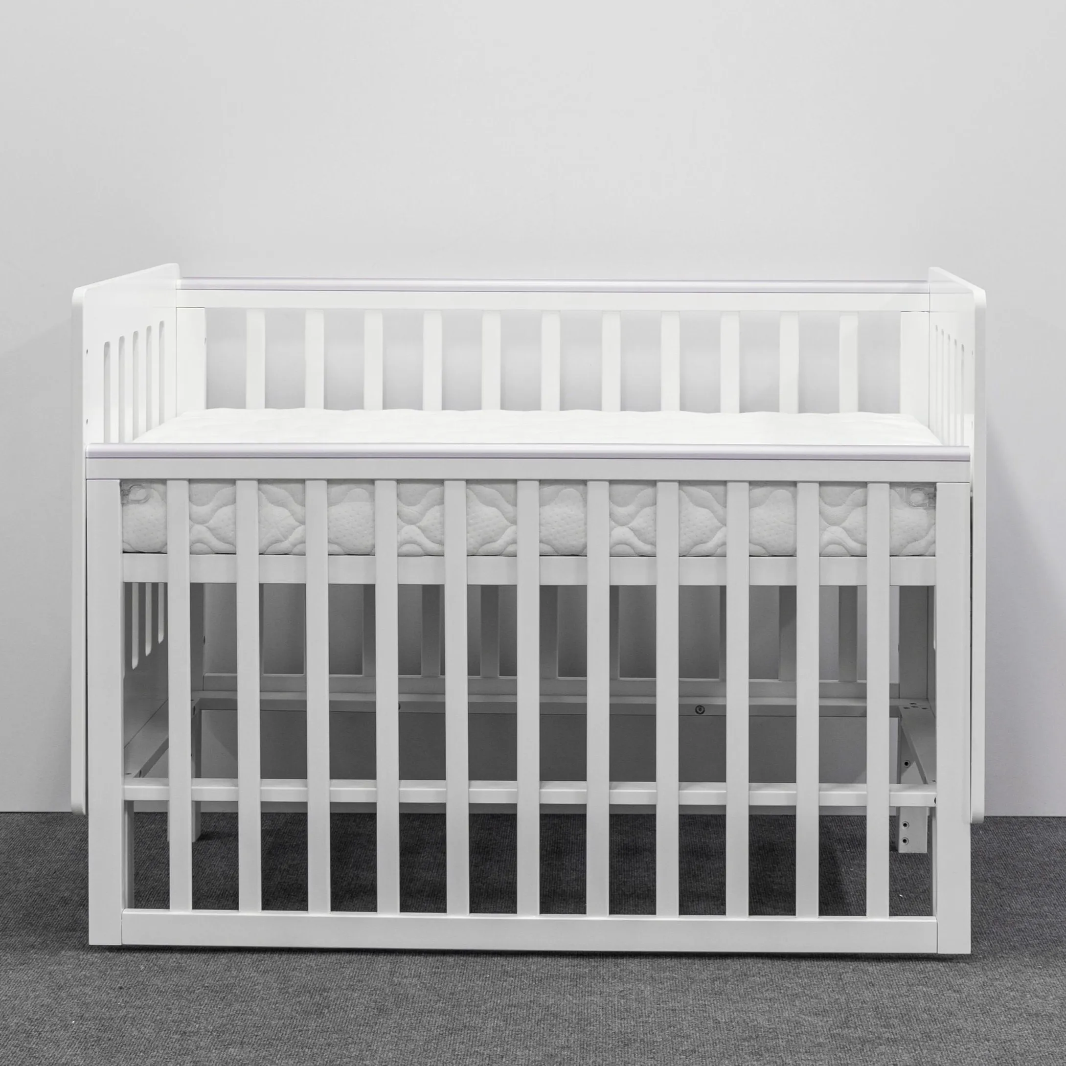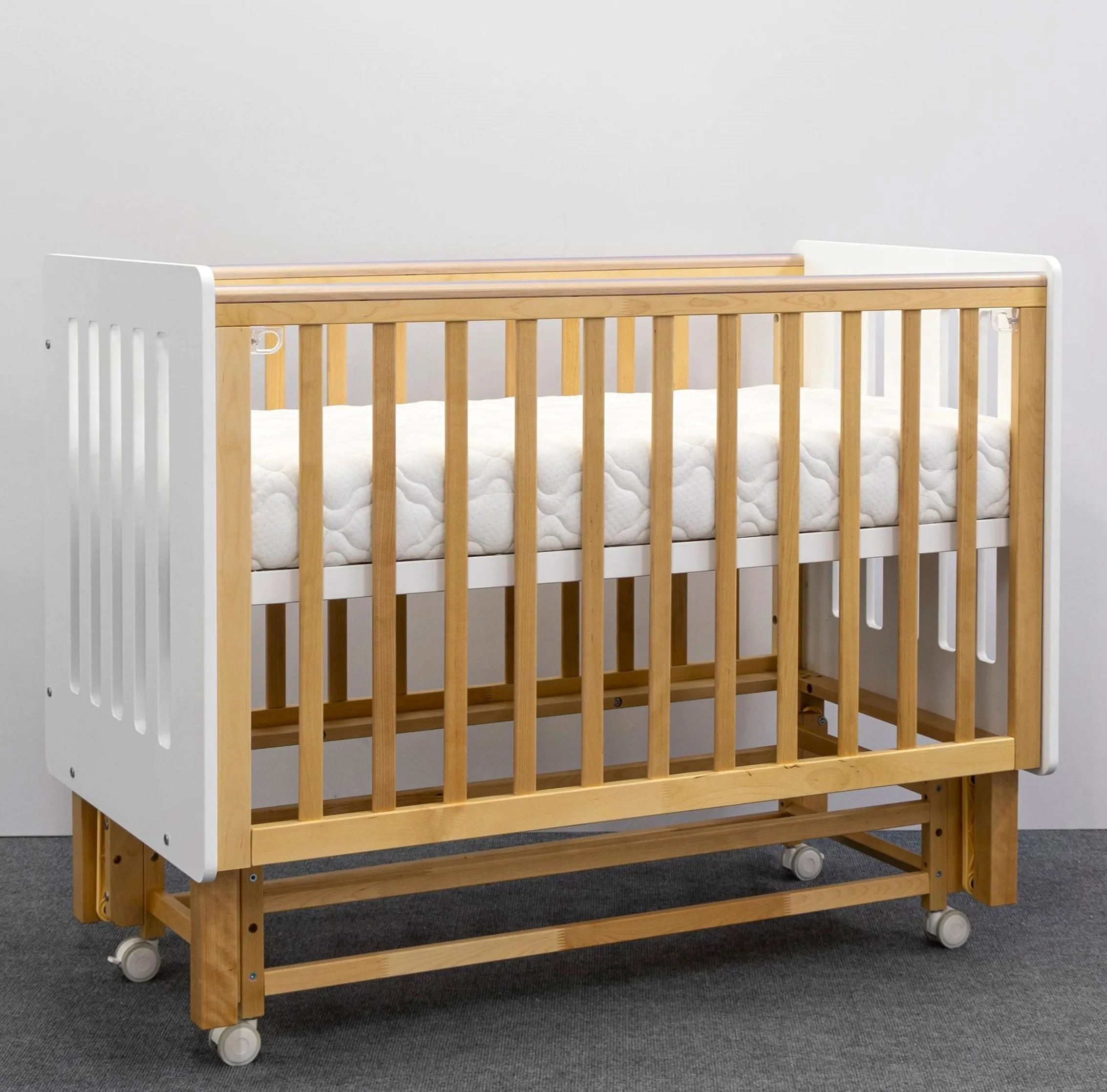 - Высота уровней ложа для кроватки на колёсах: 30, 42, 55 см